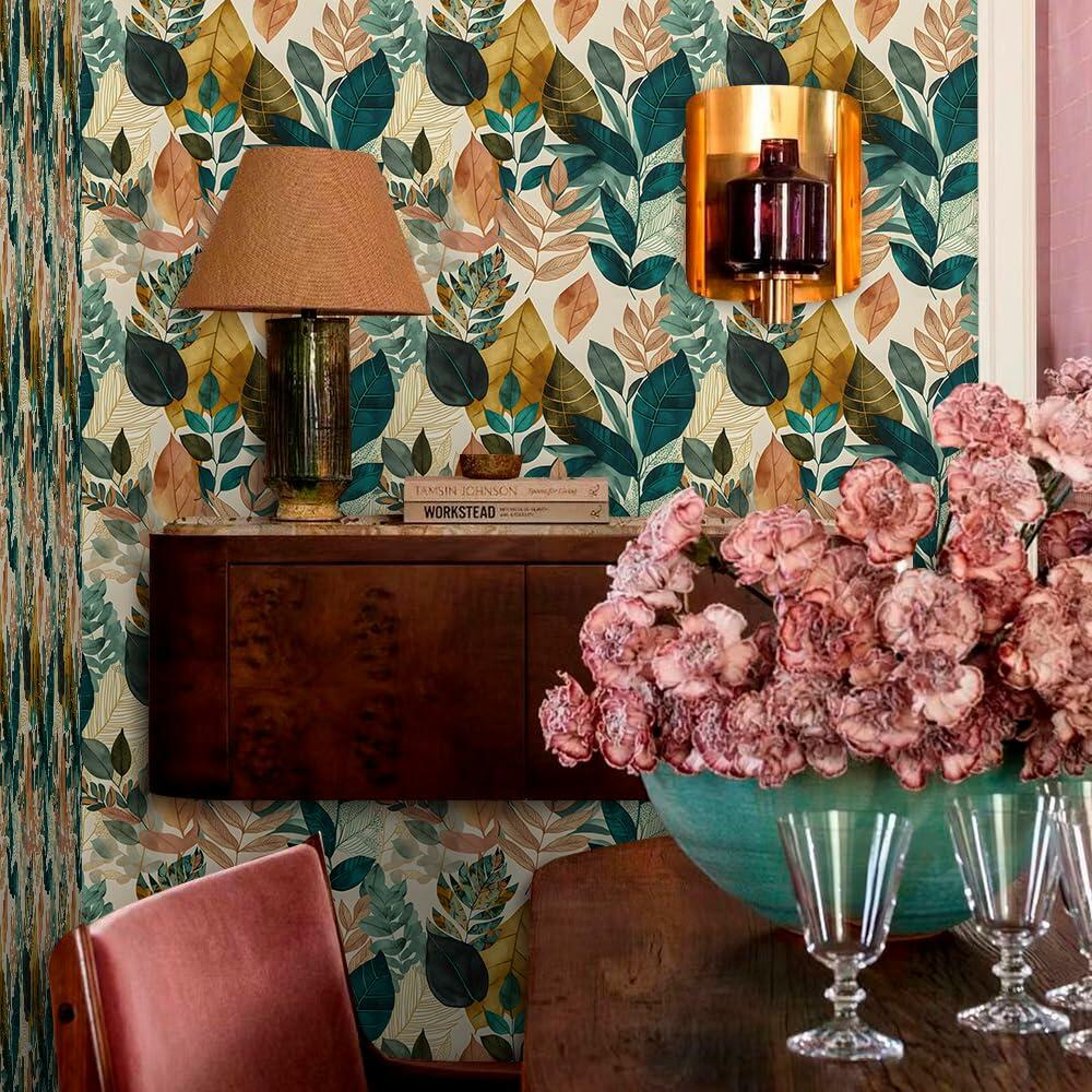 MuralPeel Boho Leaf Botanical Peel Stick Wallpaper Brown Green Yellow
