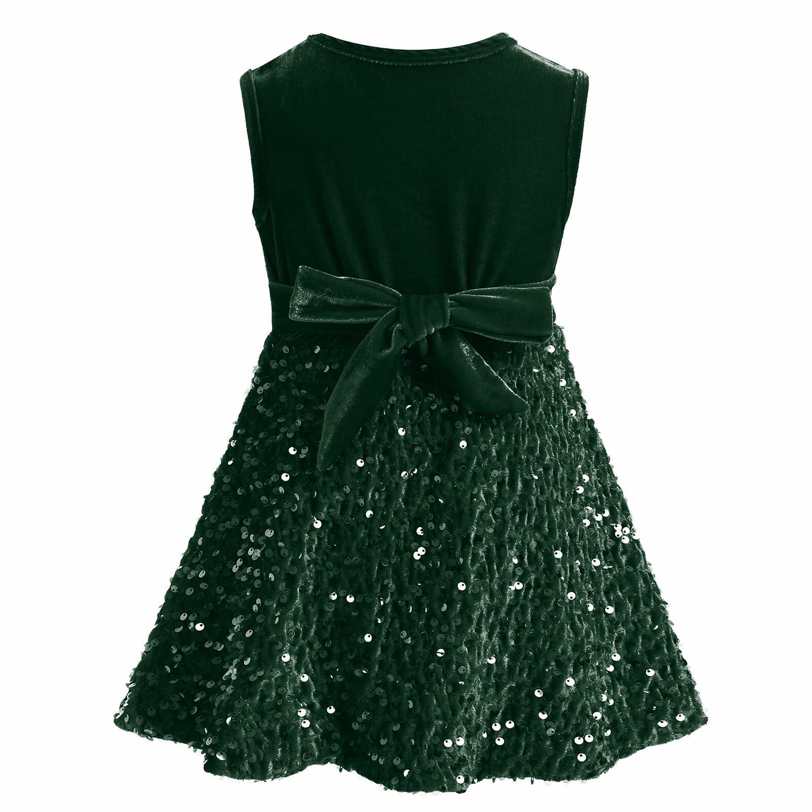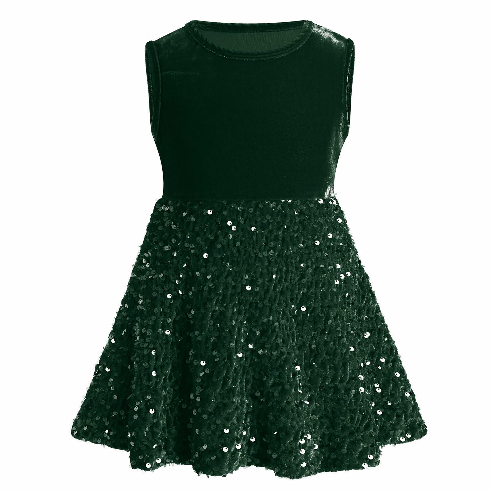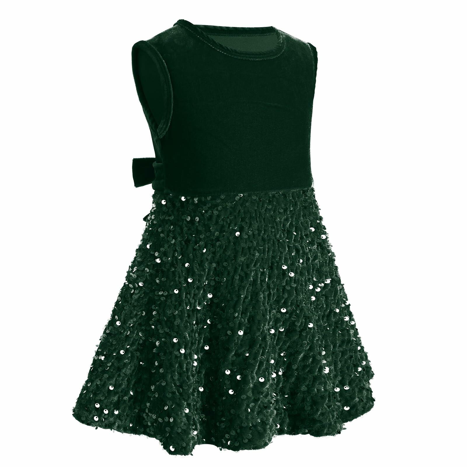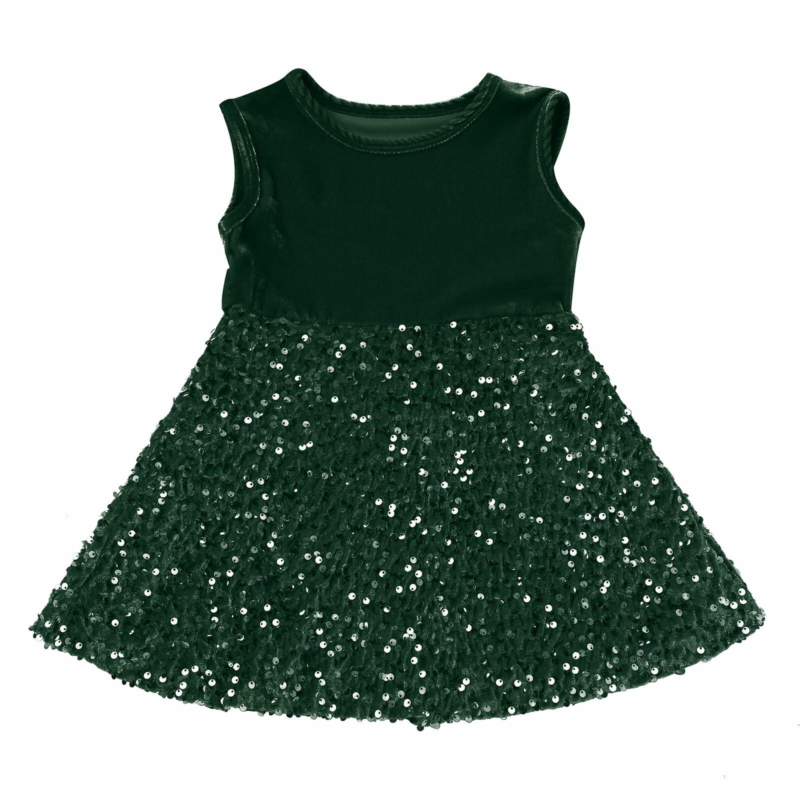 - BABY CHRISTMAS OUTFITS: Luxe and vintage-inspired, this glitter velvet dress will have you smitten with its xmas colors hue, round collar at the sleeveless tank top bodice, an lace up waist, and a sparkly slightly pleated skater skirt that was made for twirling.