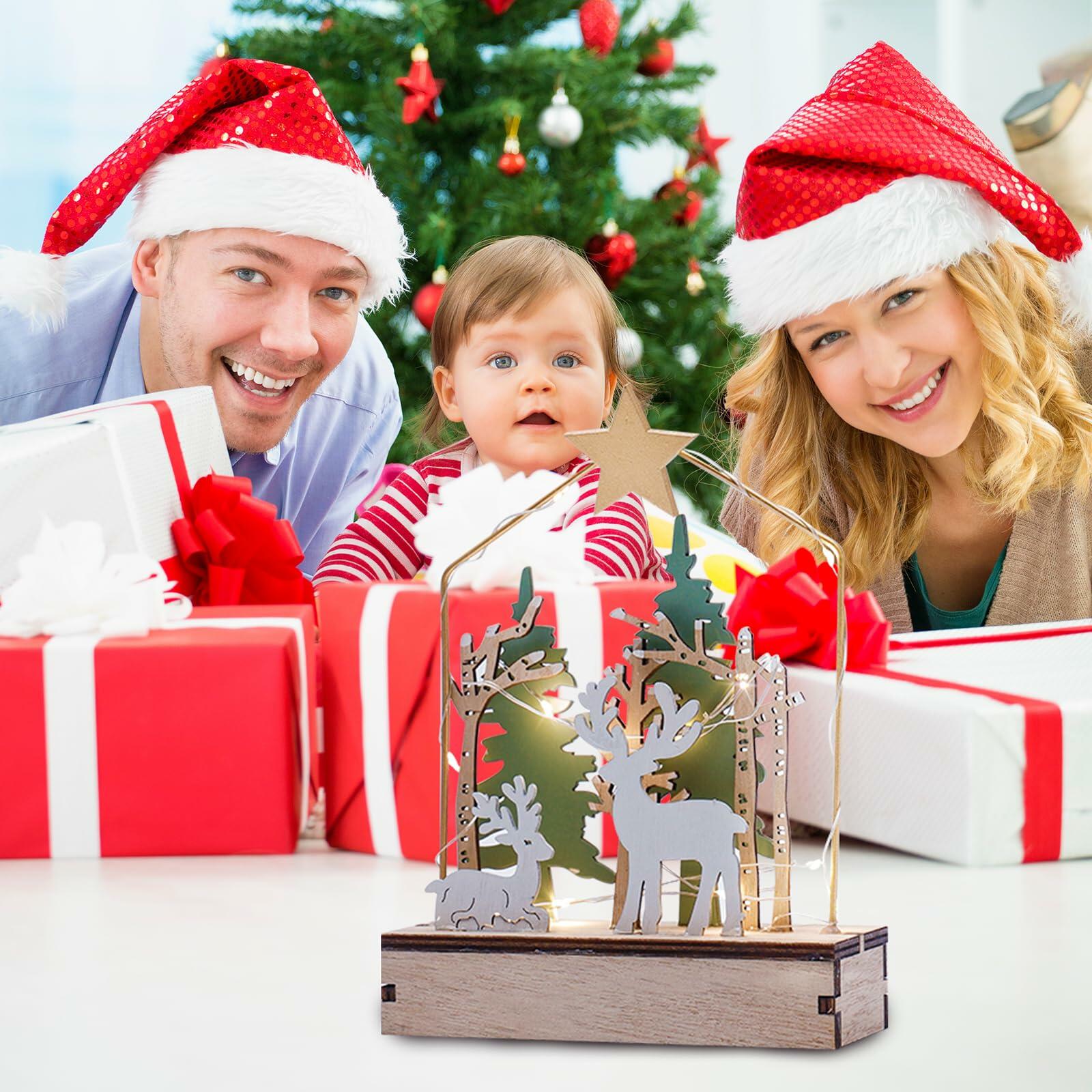 - LED Christmas Decoration:This reindeer table decoration is wrapped in strings of lights to create a cozy atmosphere; simply insert 2 AA batteries (not included) to light up the LED lights and bring a magical glow to your Christmas decorations