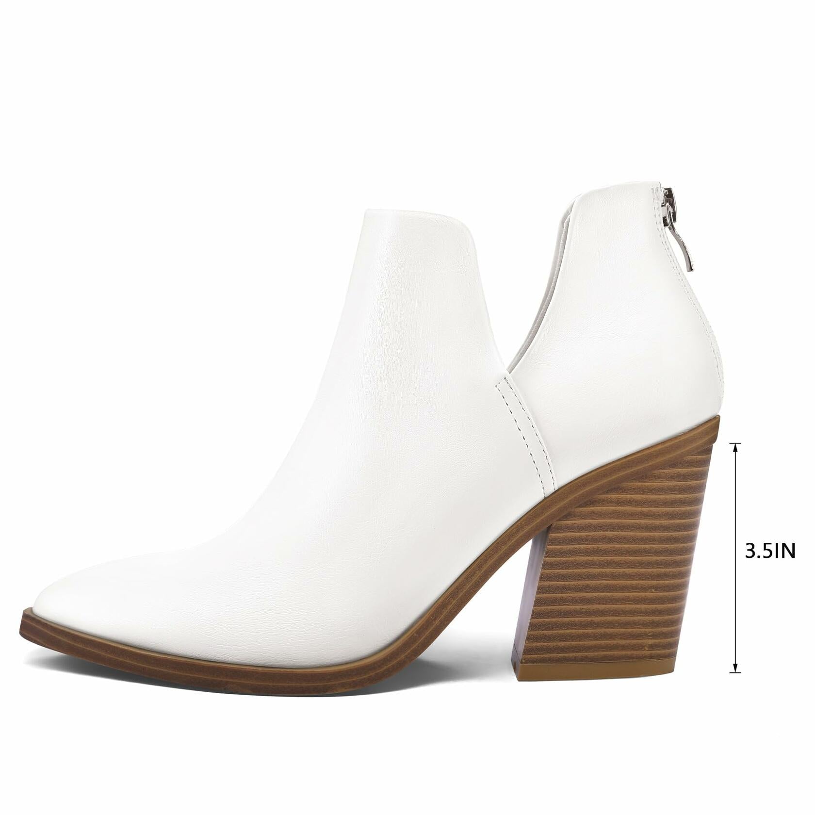 - EASY TO WEAR: Designed with a back zipper of casual heeled ankle booties easy to wear on/off.