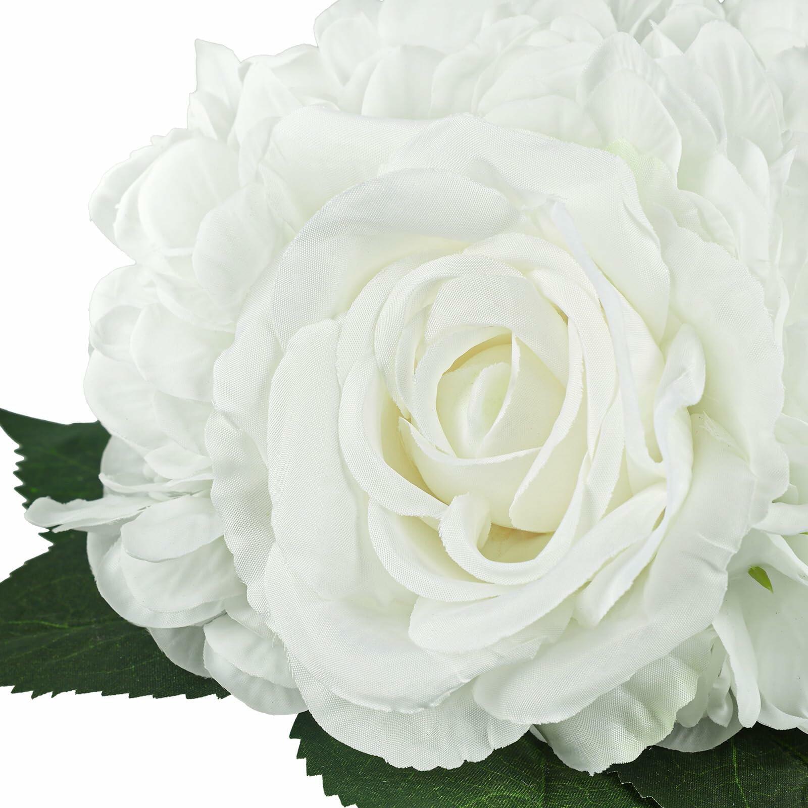 - Add Beautiful Roses: We added two roses to decorate the fake hydrangea flowers, matching the color of the three white artificial hydrangea flowers,each hydrangea flower has 80 petals,5 heads the design is not only unique, but also beautiful full.Fluffy fake flowers petals paired with 6 leaves, more realistic