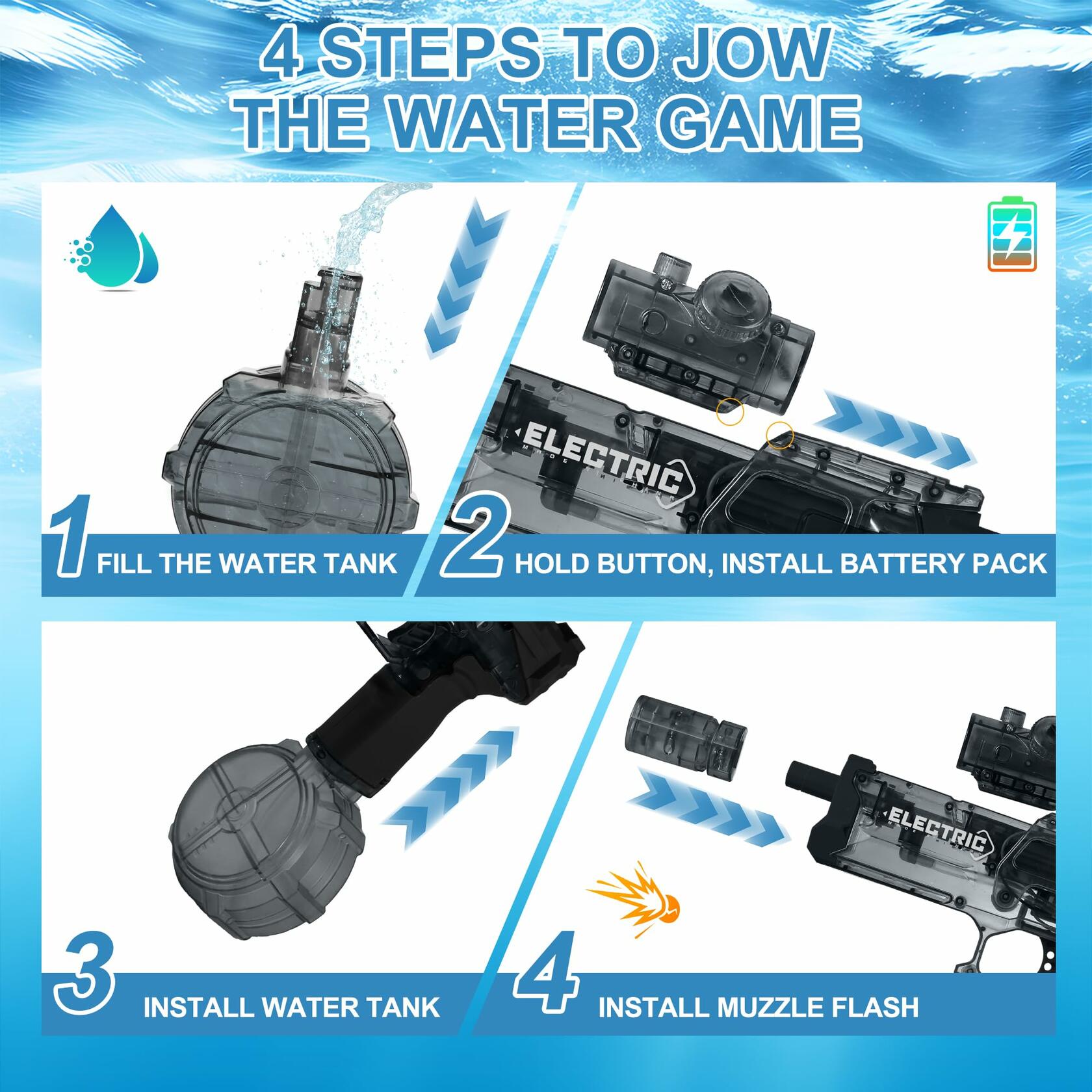 - [Extra-Large Water Tank for Longer Playtime] Stop wasting time refilling! Our electric water gun comes with a high-capacity water tank, giving you more shots per fill. Enjoy epic water battles without constant interruptions.
