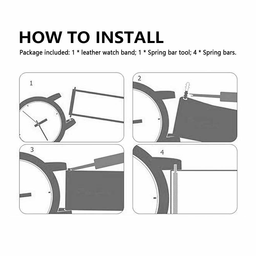 - Package included: 1 * leather watch band; 1 * Spring bar tool; 4 * Spring bars. It is easy to remove and fit spring bars.