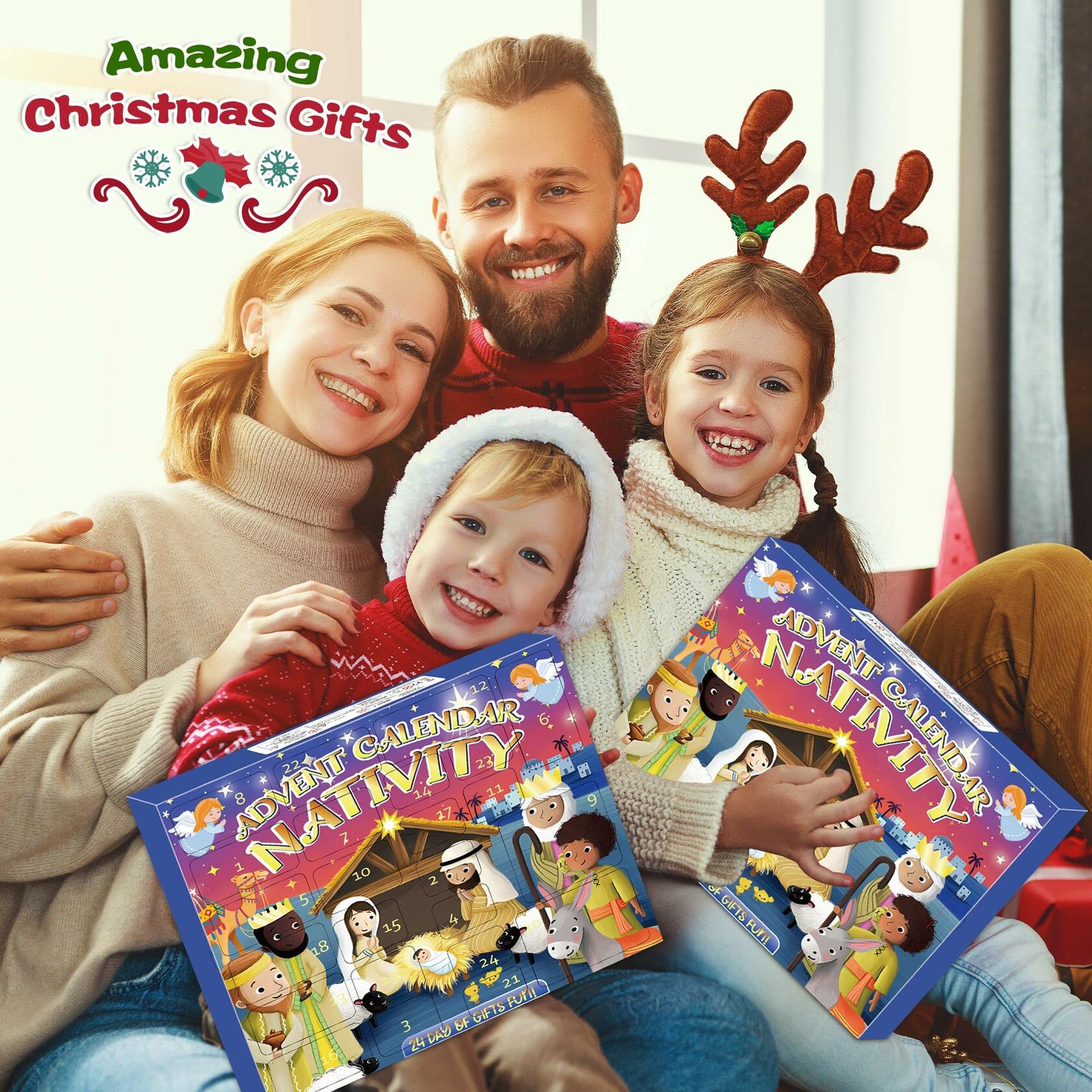 - 24 Days Advent Treasure Journey - Advent calendar 2024 leads you to explore a new adventure experience in a very exciting way. The kids toddlers advent calendar has 24 doors, and each of them hide nativity scene statue, the mystery allows your kids to enjoy the surprise of the countdown calendar for the coming Christmas