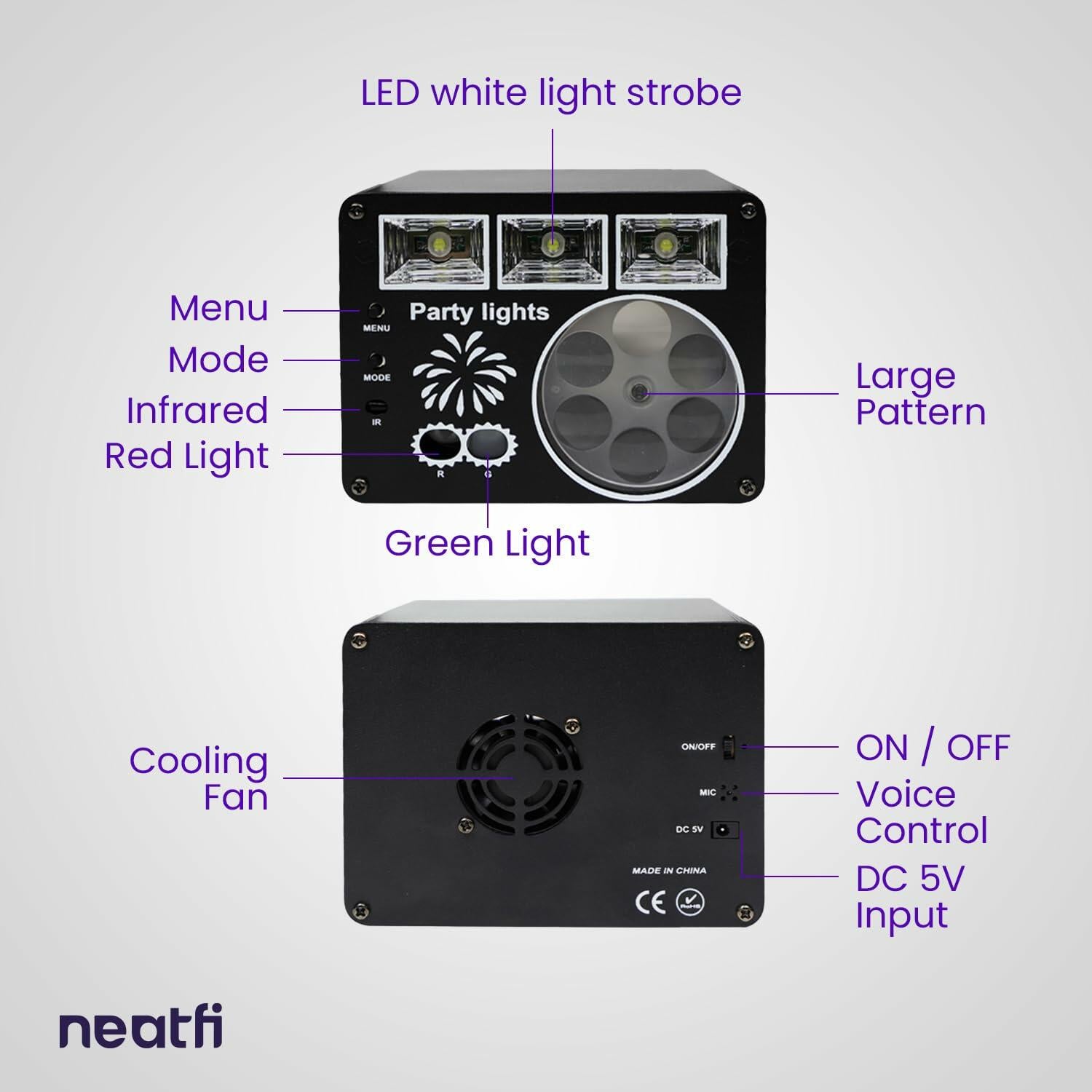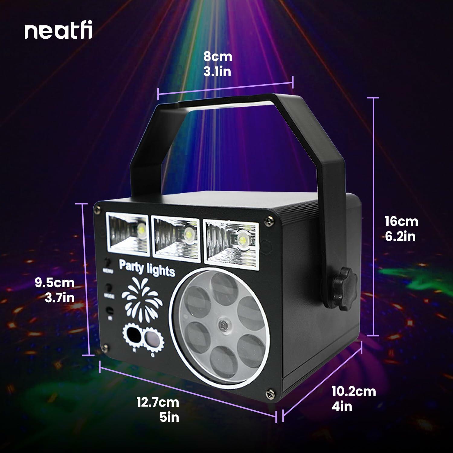 Elevate your events with Neatfi Multi-Function DJ Lights! This versatile 3-in-1 party light features a stunning disco ball effect, vibrant strobe lights, and customizable modes for the ultimate disco party decorations. Perfect for DJs and stage lighting, these lights will transform any venue into a lively atmosphere, making it the ideal choice for parties and celebrations. With remote control functionality, you can easily switch modes and settings to suit your vibe. Get ready to shine with Neatfi DJ Lights for parties!