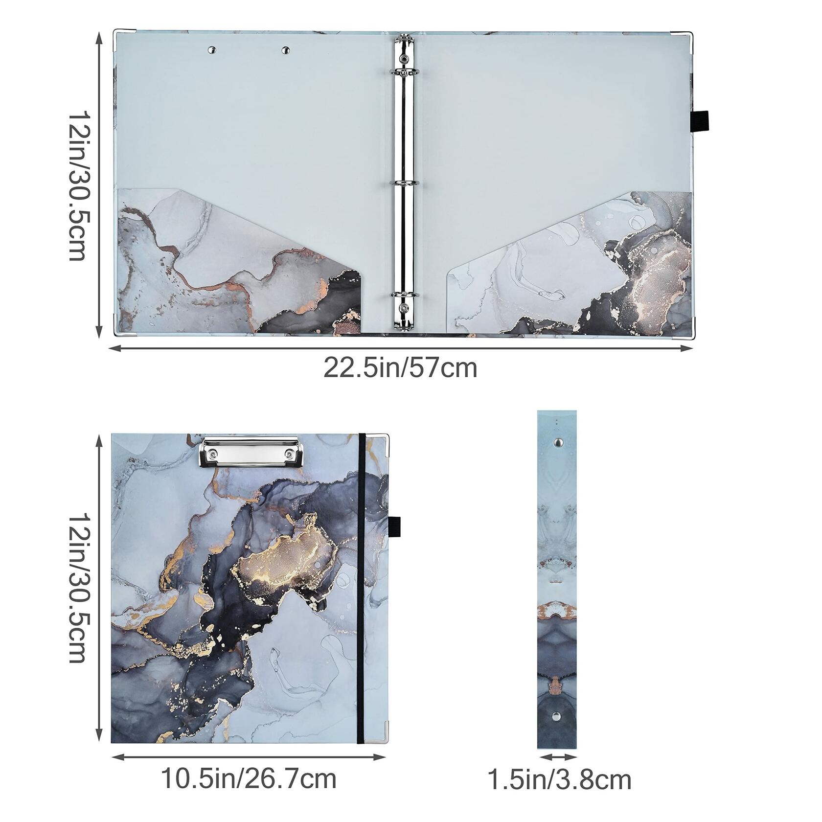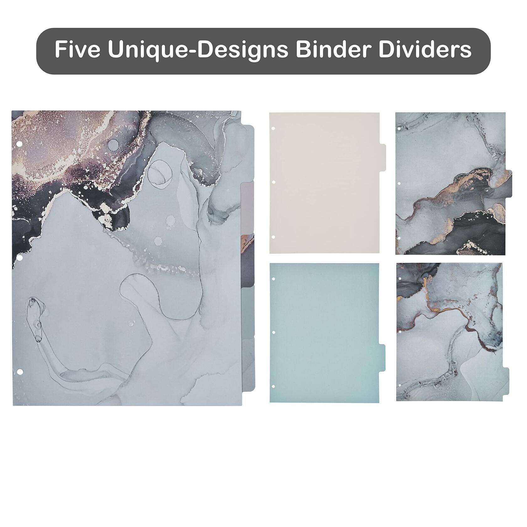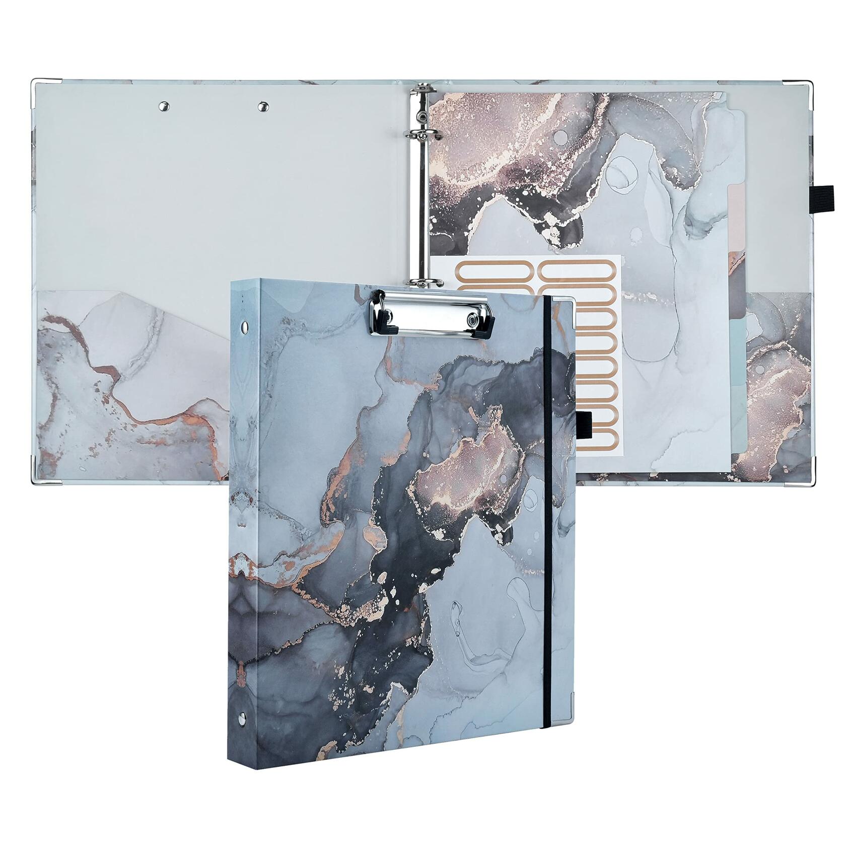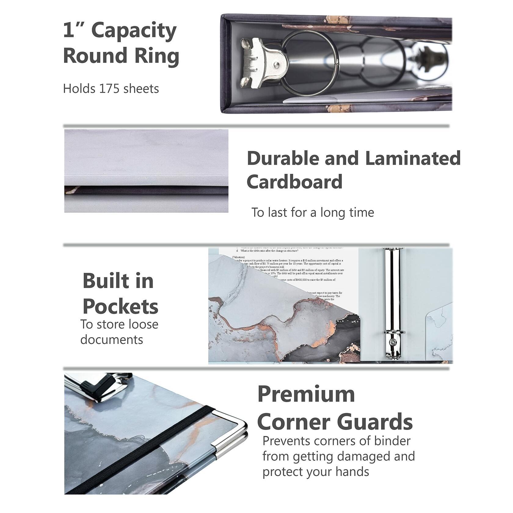 NELOVI 3 Ring Binder Letter Size 1" Black Marble Clipboard with 5-Tab Dividers