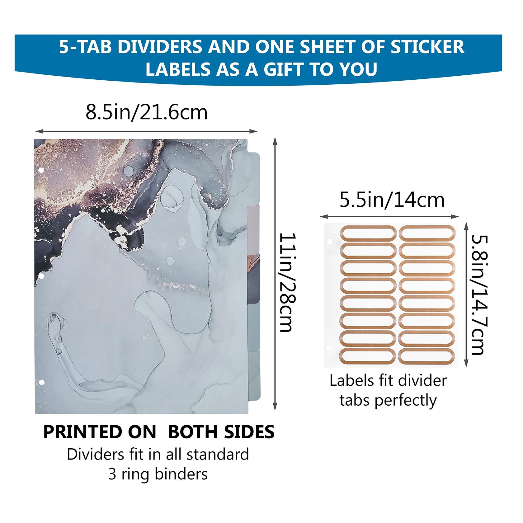 - Organized, And Tidy: This 1 Inch 3 Ring Binder comes with 5 index dividers with tabs, plus 16 file folder labels self adhesive stickers. And while tabs and plastic sleeves peek out from other fashion binders, they stay tidy inside ours! 12 x 10.5in Binder, 9 x 11in Dividers, holds 175 Letter-Size Pages.