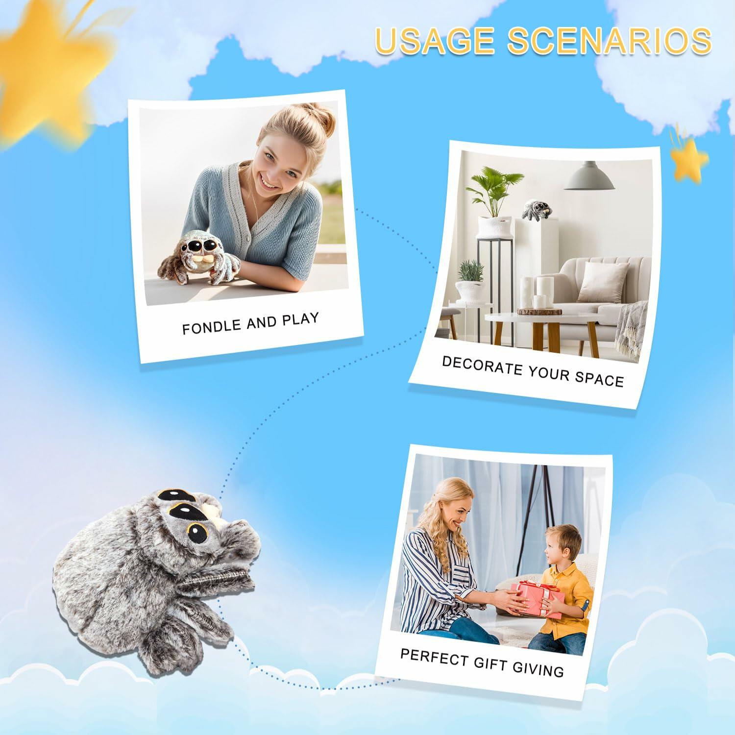 Spider plush is an adorable and cozy plush toy suitable for boys and girls aged 3 and above. Whether it's a gift or a personal keepsake, it promises endless joy and comfort. Measuring 6.9 inches, spider stuffed animal is perfect for cuddling or as a decorative piece on your bedside table. Its soft material and meticulous craftsmanship make it an intimate companion. Key Features of Jumping Spider Plush: Premium Quality Materials: We prioritize softness and durability, using only the finest plush and fillings. Exquisite Handcrafted Design: Each piece is meticulously crafted, ensuring impeccable attention to detail. Safety and Reliability: Our spider plush toy undergoes rigorous quality testing, guaranteeing its non-toxic and safe nature for individuals of all ages. Whether you're looking to treat yourself to a delightful toy or present it as a gift to loved ones, plush spider is an exceptional choice. It not only provides warmth and comfort but also becomes a cherished companion in your life. We are dedicated to offering you the best shopping experience possible. Should you have any questions or require assistance with our products, please feel free to reach out to our customer service team. Thank you for choosing spider toys, and we look forward to providing you with outstanding service and products.