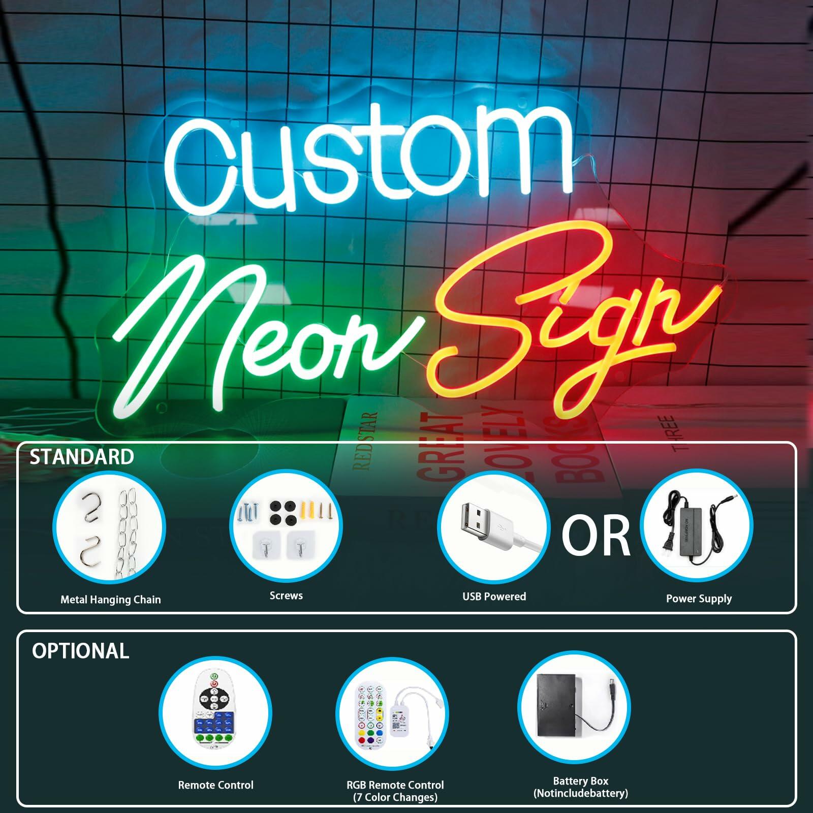 - Easy to Install: Designed for convenience, these neon signs come with all the necessary hanging and mounting accessories. The durable acrylic backboard features pre-drilled holes, making it simple to securely hang/mount on the wall, or move the neon sign as desired. Whether decorating your space or enhancing your environment, simply plug it in via USB and enjoy the glow