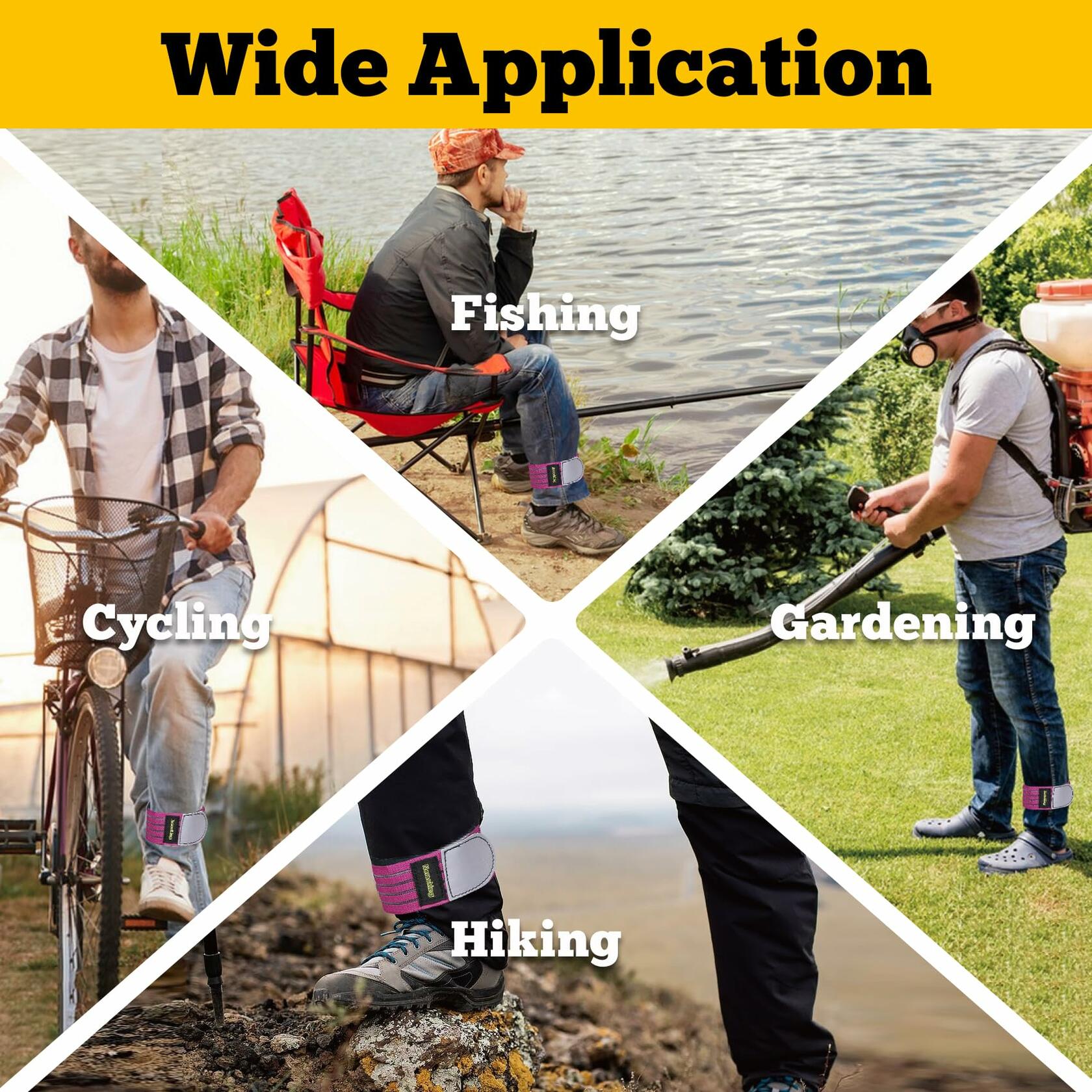 - EASY TO USE: Simply wrap it around your pants leg with the hook and loop closure. The boot bands are great for biking, hiking, gardening, camping, hunting and walking