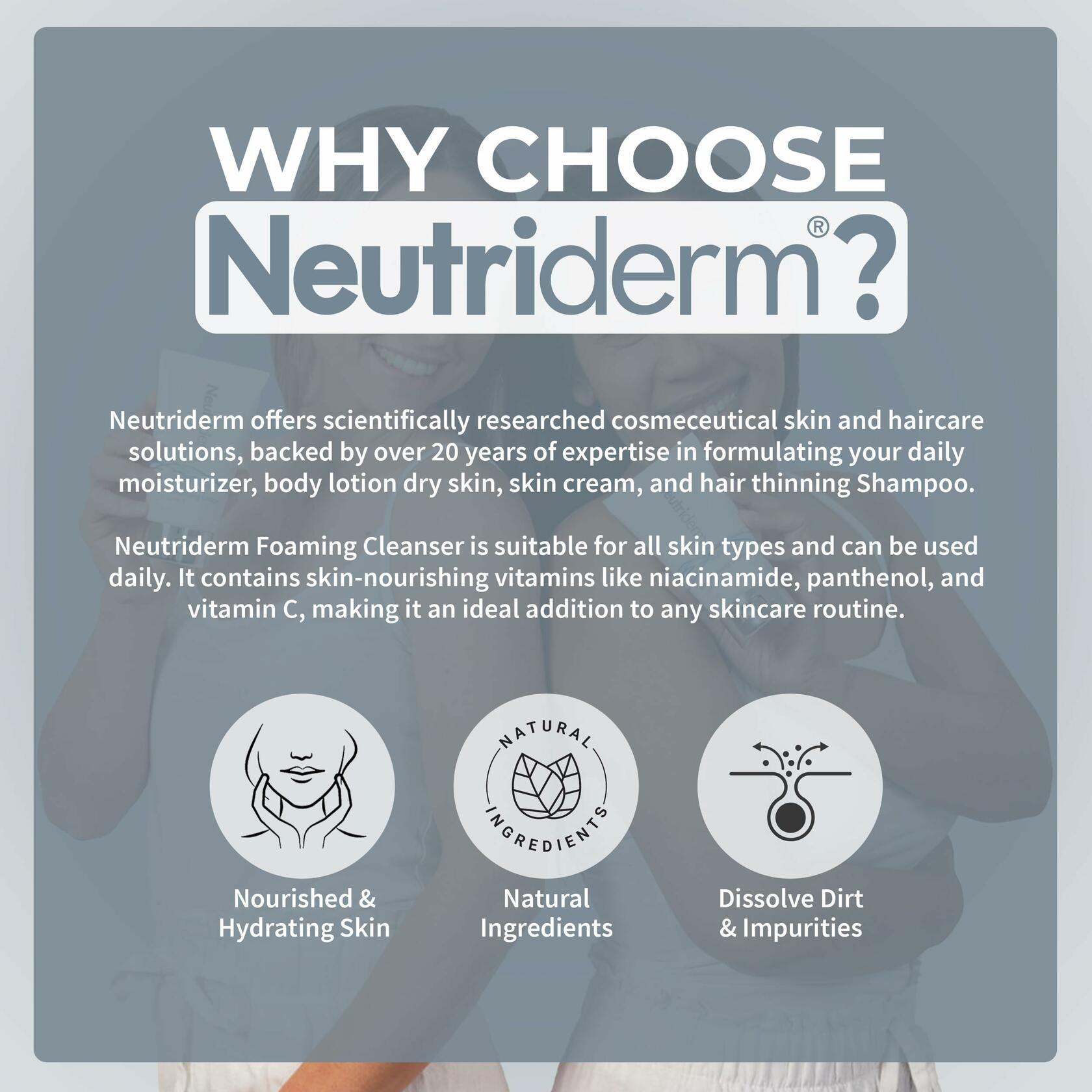 - Hydration Focus: Unlike many traditional foaming cleansers that can leave the skin feeling tight or dry, Neutriderm's formula is designed to maintain moisture balance, ensuring that your skin feels refreshed and nourished after use.