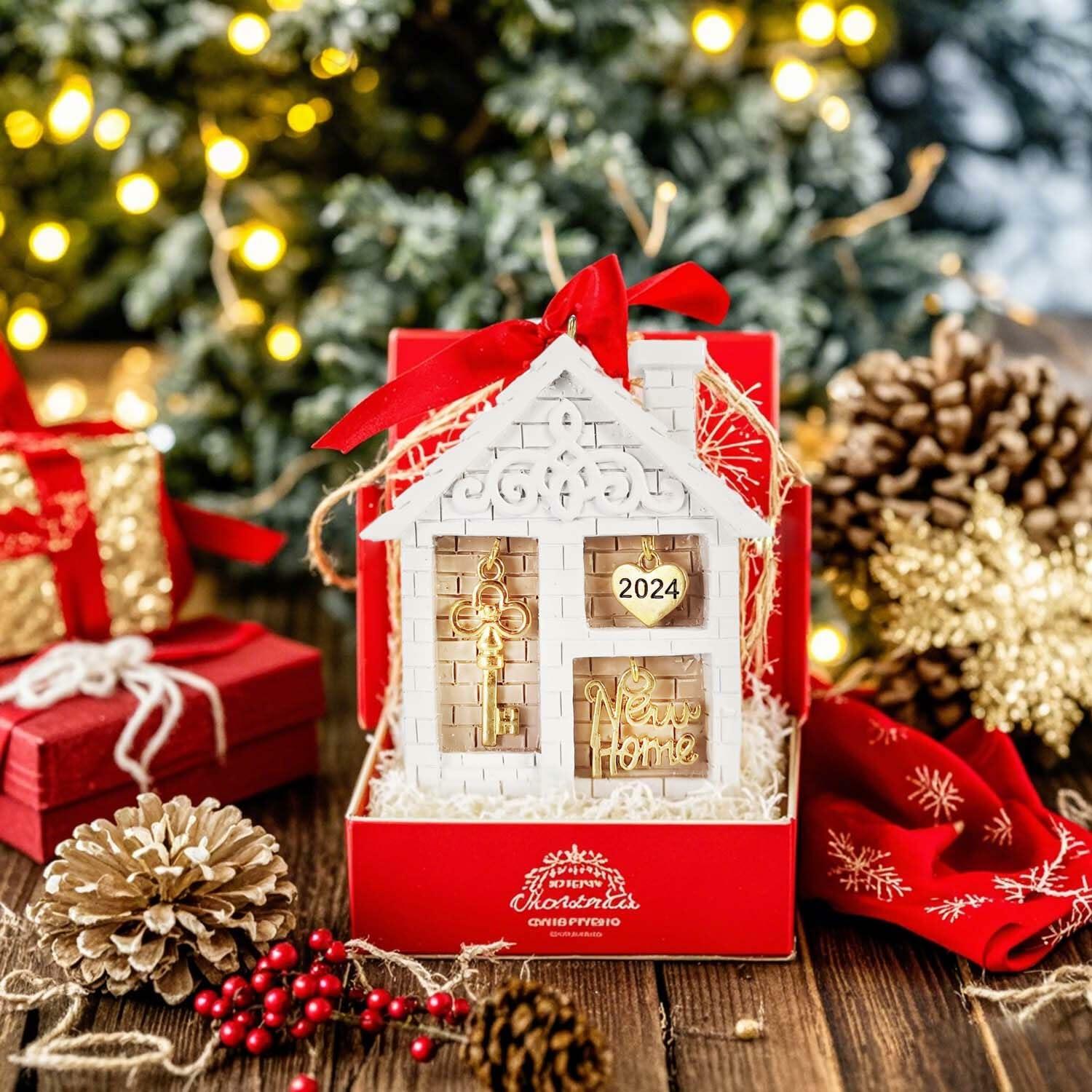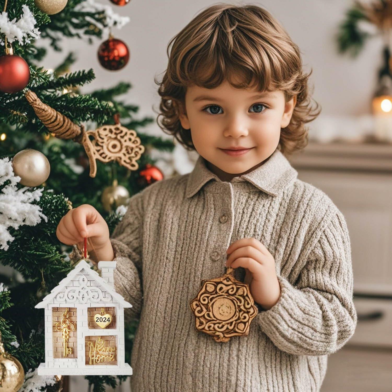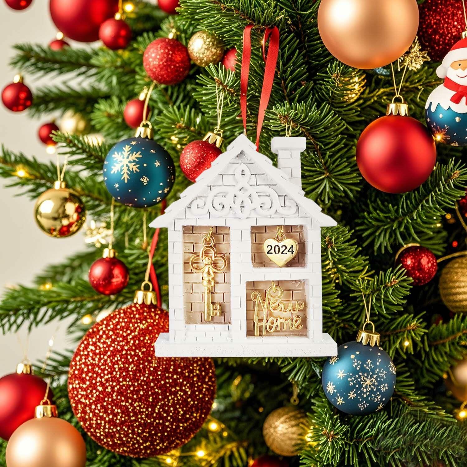- 🎄New Home Christmas Ornament: Commemorate A brand-new home or becoming new homeowners with this 2024 Christmas ornament. Resin house-shaped shadow box design includes metal charms. On ornament: 2024 New Home.