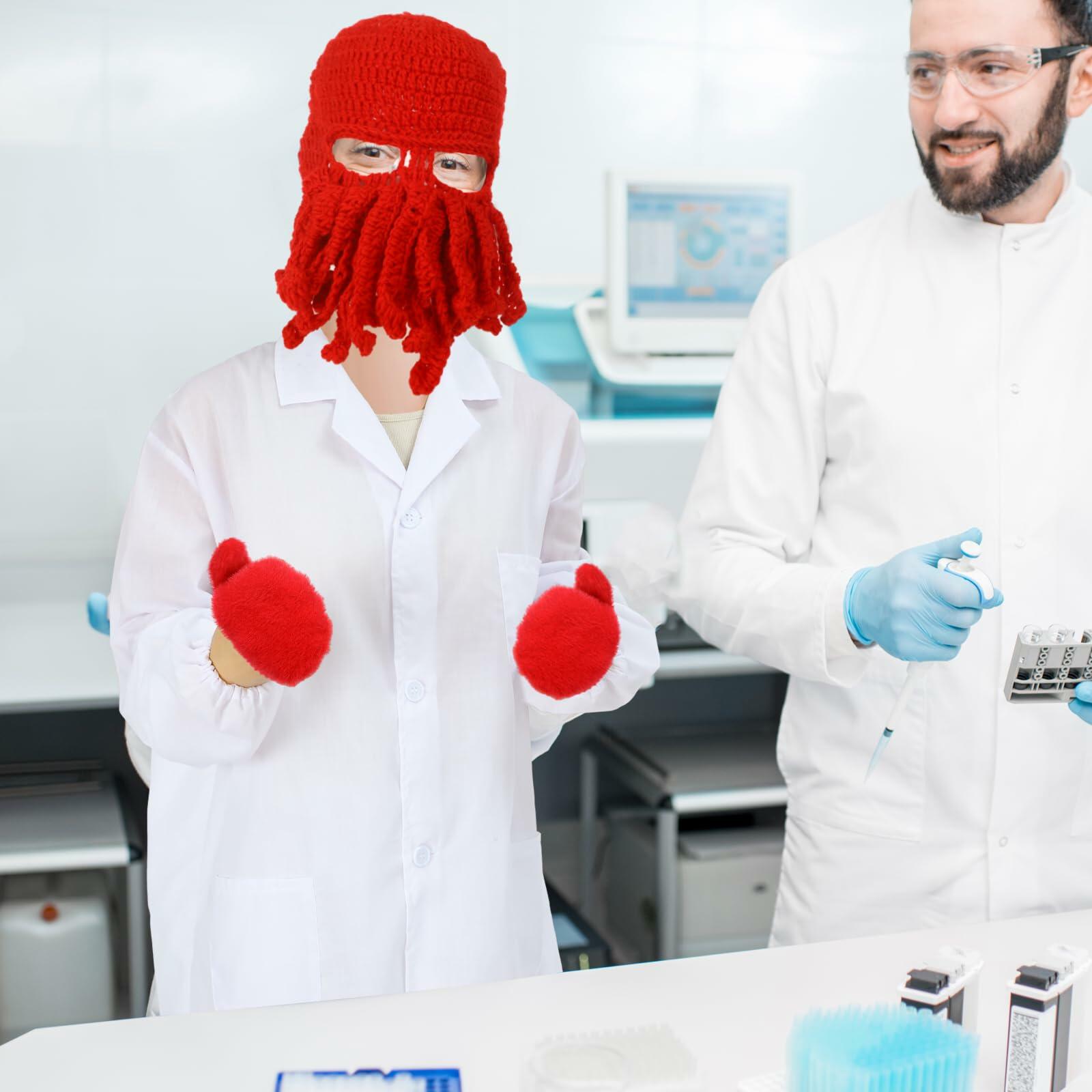Features: Complete Outfit for Authenticity: This full costume package includes a white lab coat, gloves, and the iconic tentacle mask. With lobster claw gloves, jacket, and hood included, you're equipped to transform entirely into Dr. Lobster. This is an ideal gift for fans of character cosplay that captures the essence of the animated figure. For Enthusiasts and Professionals: Beside themed events, this costume is also well-suited for biology and chemistry courses. It's a creative way to add some humor and character to educational settings and events, blending fun with academia in a truly memorable way. Specifications: Material: fabrics Color: red, white Size: Lab coats: 41.34 inches/ 105 cm Package includes: 1 x Lab coats 1 Pair gloves 1 x Tentacle mask Notes: Manual measurement, please allow slight errors on size. The color may exist a slight difference due to different screen displays.