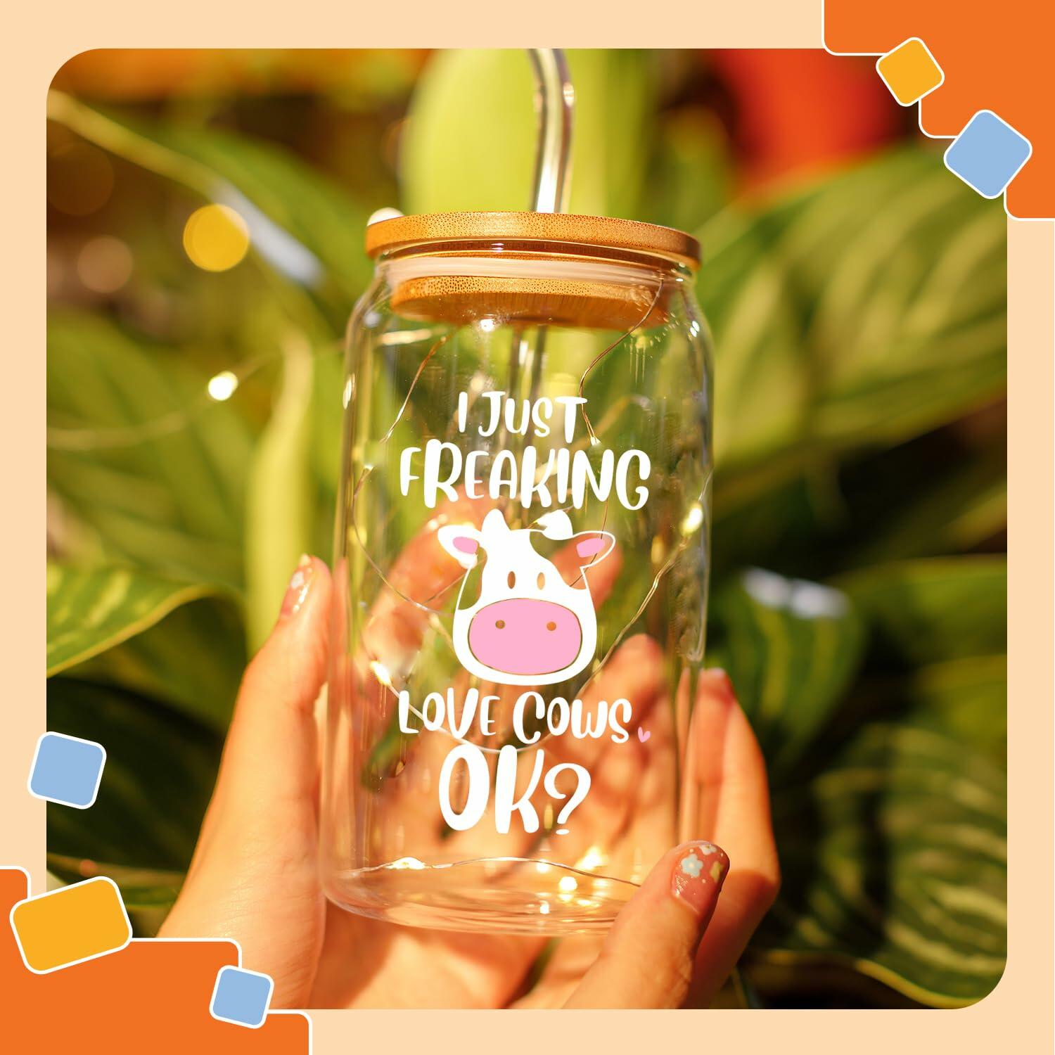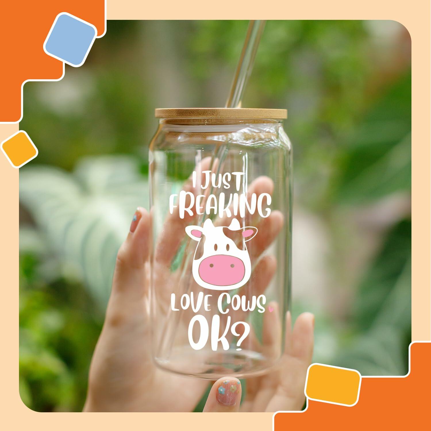 - FUNNY CUP FOR COW LOVERS - Show off your favorite animal with our unique covered cup with a straw. The glass surface features images of an adorable cow, along with eye-catching typography.