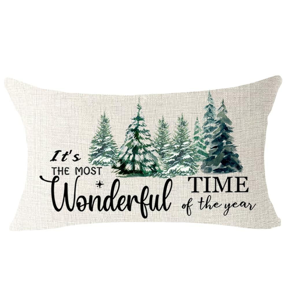 NIDITW Christmas Pine Tree Lumbar Pillow Cover Cotton Linen 12x20 Inches