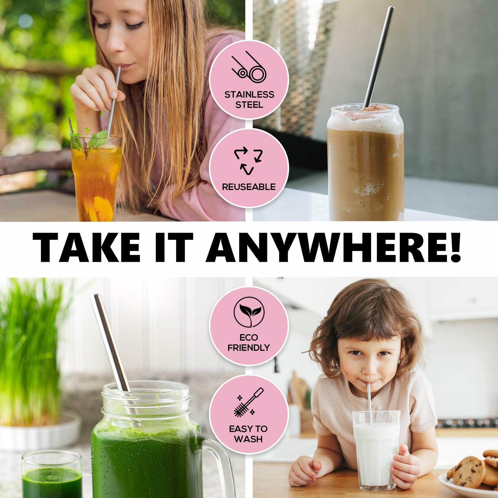 - Safe and Easy to Care - these reusable metal straws do not retain any taste or smell and are easy to clean. Simply hand wash it or pop it into your dishwasher. The straw cleaner brush makes it convenient to scrub the inside of the reusable straws.