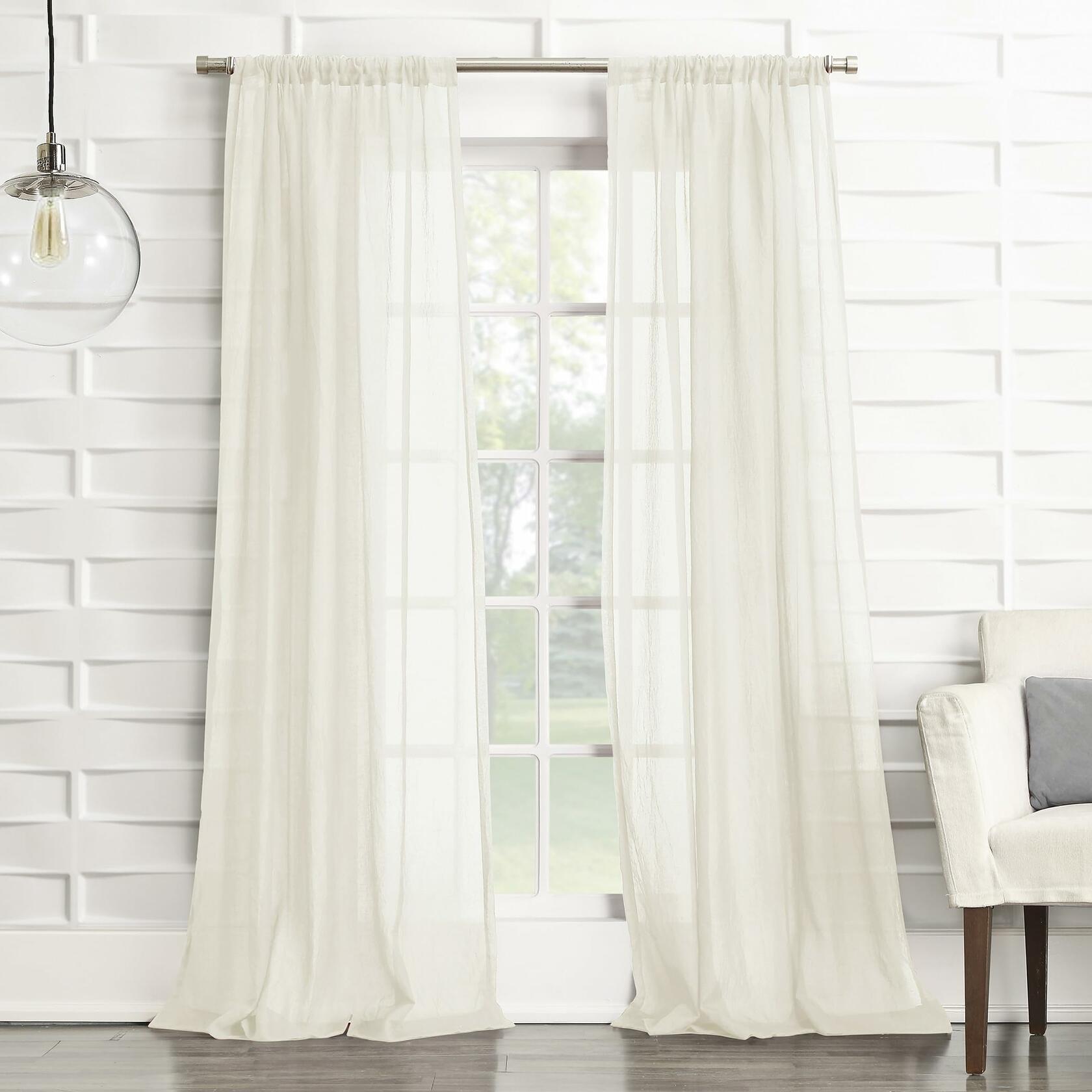 No. 918 Tayla Crushed Texture Semi-Sheer Rod Pocket Curtain Panel 50x108 Cream