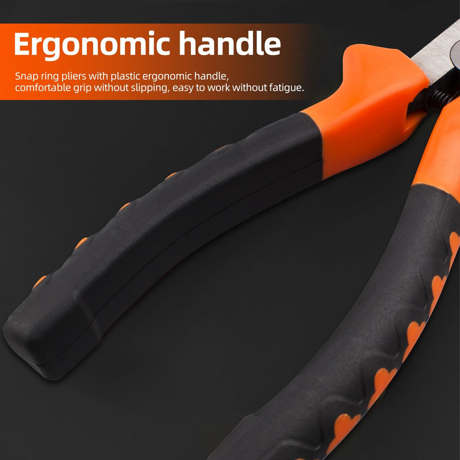 - 【Ergonomic handle】-Snap ring pliers with plastic ergonomic handle, comfortable grip without slipping, easy to work without fatigue.