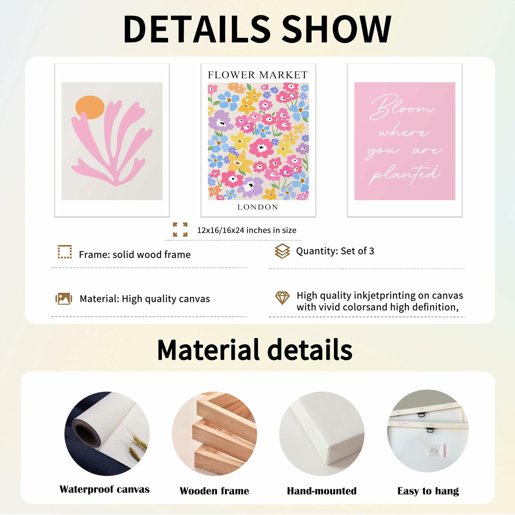 - Product Dimensions & Material: Our Pink Matisse Flowers Wall Art Prints come in a set of three, each measuring 12×16 inches. These canvas prints are crafted with high-quality materials, ensuring vibrant colors and long-lasting durability. The artwork is pre-framed, making installation simple—just hang the frames on your walls to instantly enhance your space.