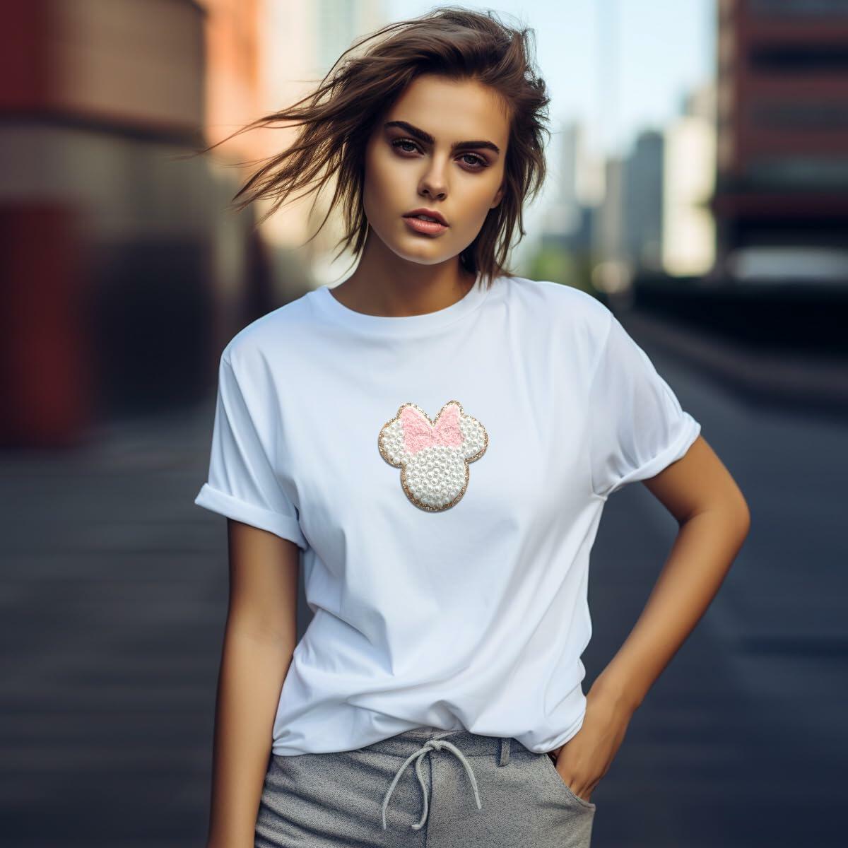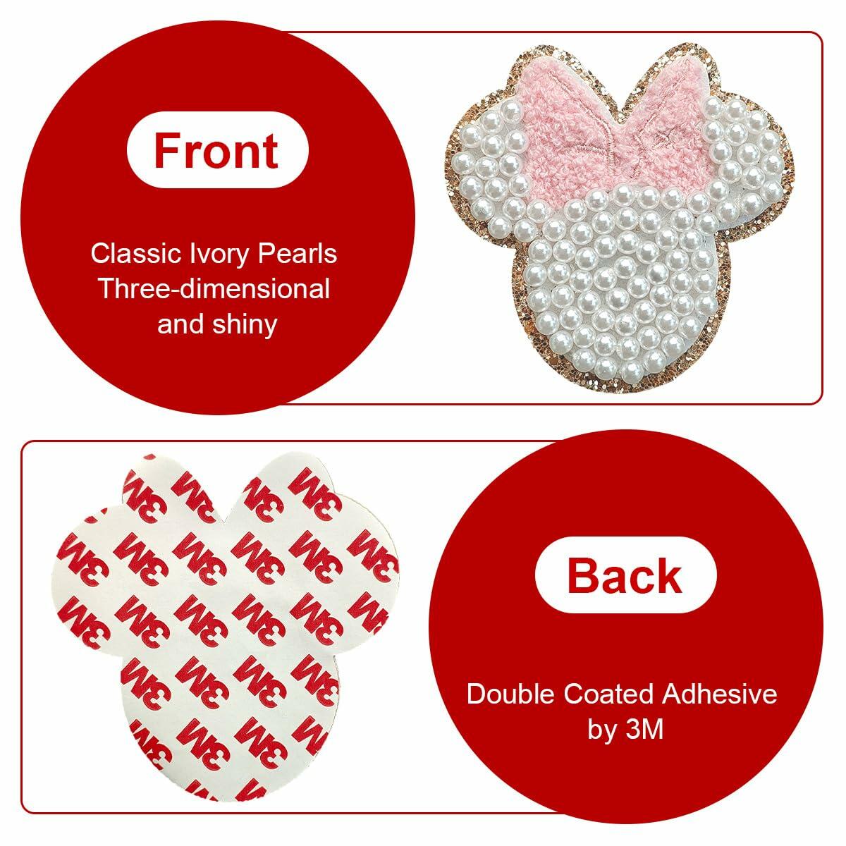 noxozoqm 2 Inch Bead Embroidered Patch Pink Pearl Glitter Edge 1Pc