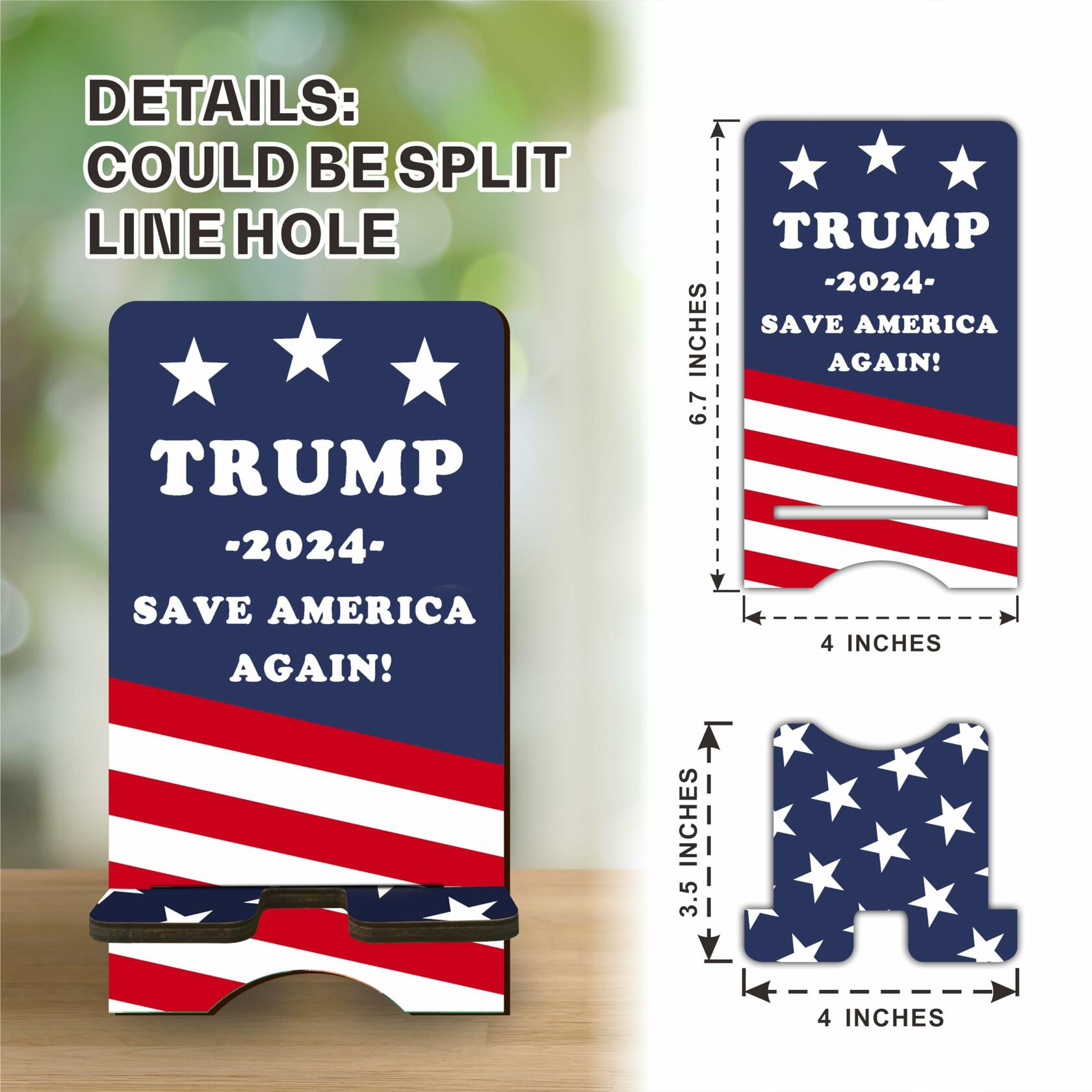 Nuckxy Wooden Phone Holder 2024 US Theme Desktop Stand Desk Organizer
