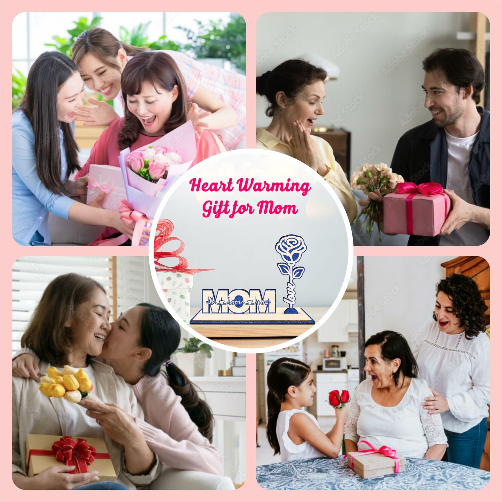 Nuckxy Wooden Rose with Stand Mom I Love You Decor Blue Desktop Ornament