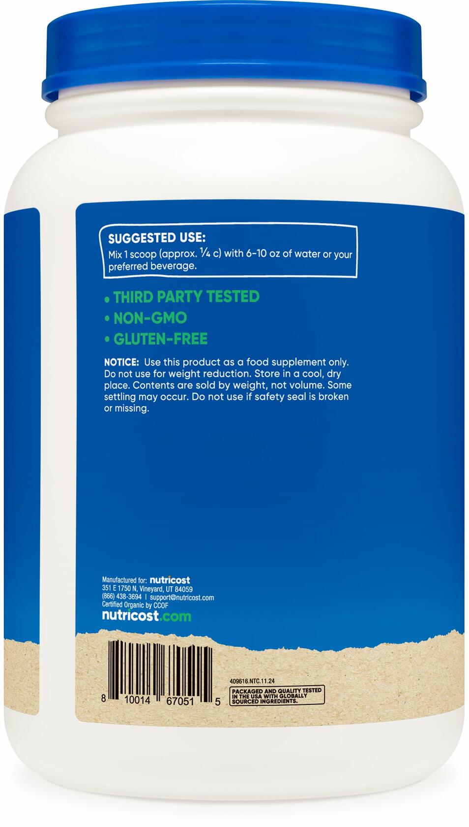 Nutricost's Pea Protein is Certified USDA 100% Organic. Each serving (scoop included) contains 26 grams of powder (20 grams of protein). It is non-gmo, gluten free, vegetarian friendly organic pea protein powder. All Nutricost products are made in a GMP Compliant Facility and all ingredients and finished products are tested by 3rd party, iso-accredited laboratories to insure you have a safe, high quality product.