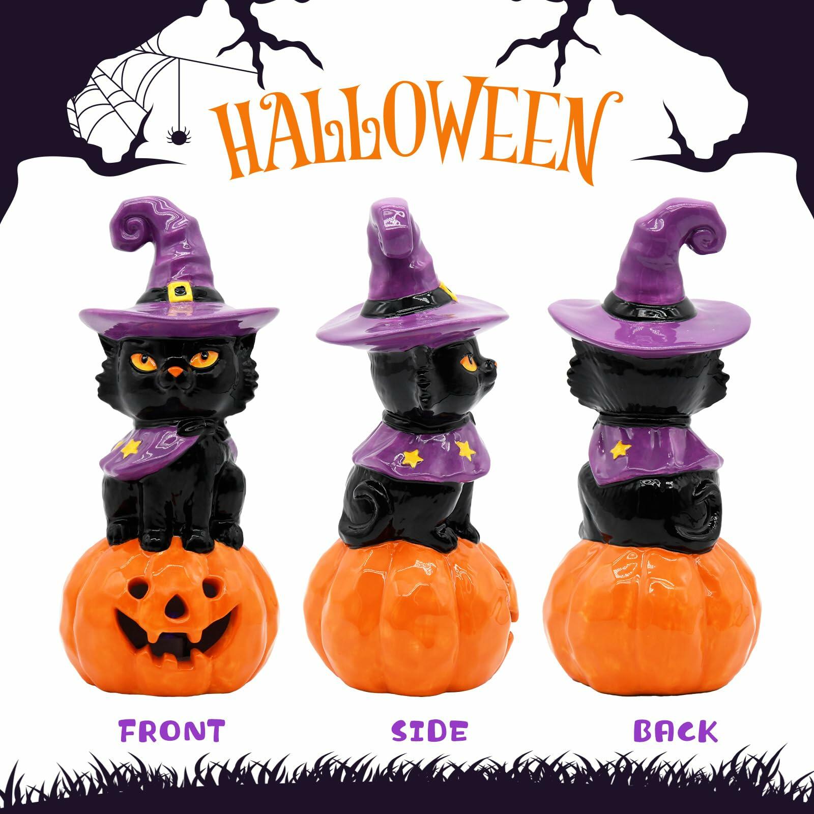 - CERAMIC CONSTRUCTION - Crafted from high-quality ceramic with hand-painted details, this decoration showcases exquisite craftsmanship. The glossy finish enhances the rich black color while the cute pumpkin accent adds a festive touch to your decorations for home indoor collections.