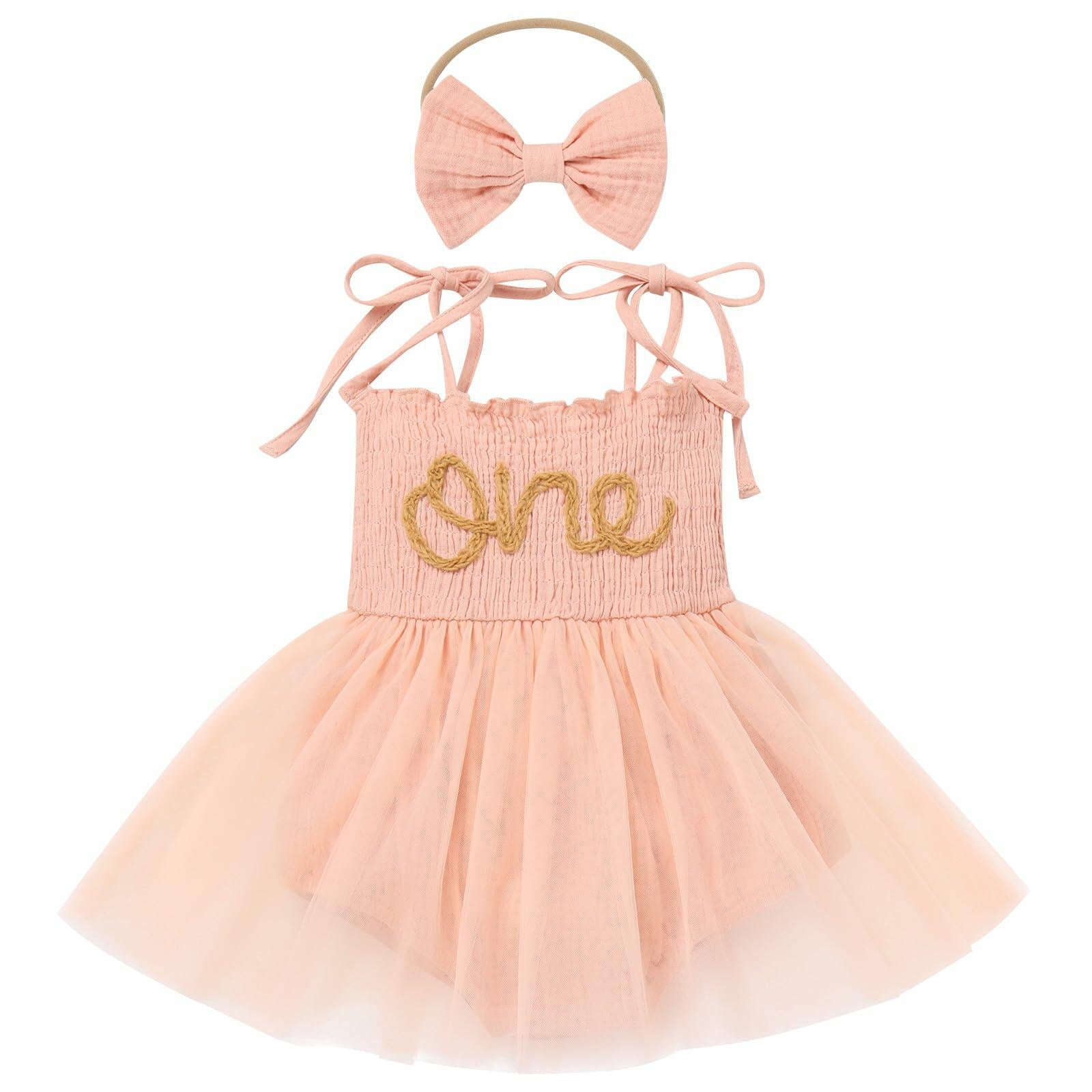 - BABY GIRL FIRST BIRTHDAY DRESS - Adorable newborn infant baby toddler kids girls 1st birthday party dress with bowknot headband, one year old baby cake smash outfit. Boho style embroidery one spaghetti strap backless tutu tulle a-line princess romper dress. Comes with a matching bowknot headband to complete the overall look. Beautiful vintage pageant wedding bridesmaid Christening baptism dress! Perfect one year old party dress for your birthday girl, first easter party or for any event