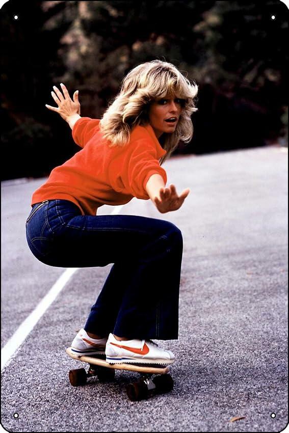 Oedrtqi Farrah Plays Skateboard Metal Tin Sign Wall Art 8x12 Inch