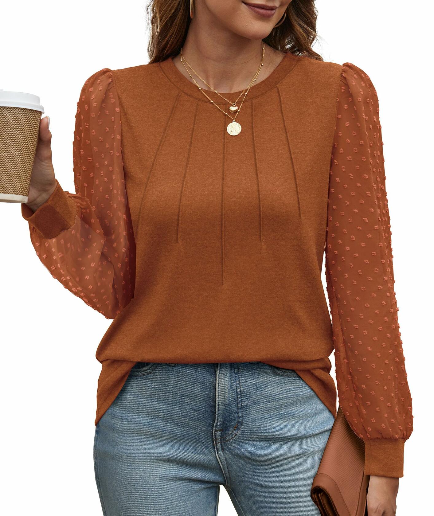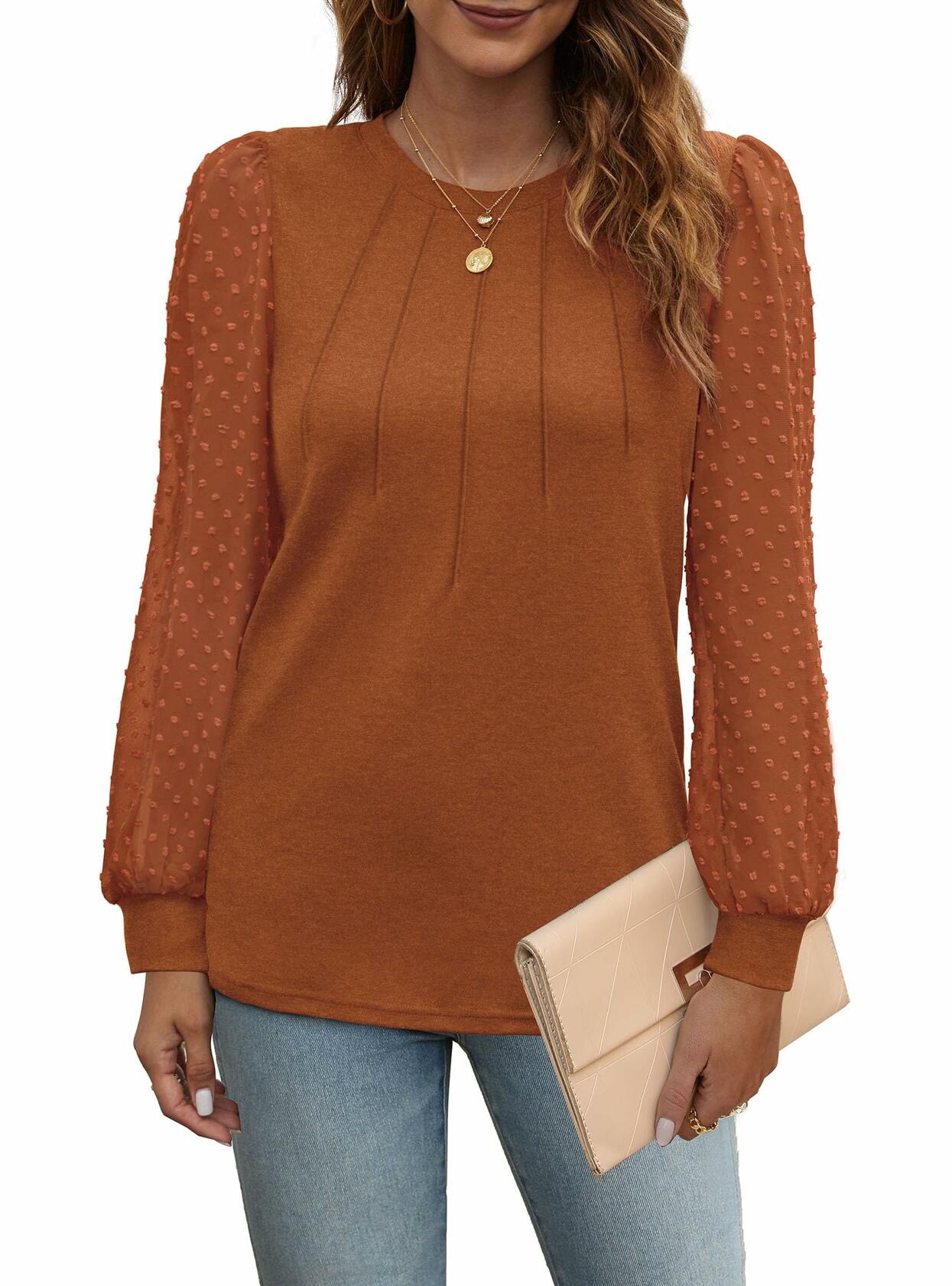 OFEEFAN Womens Puff Sleeve Top Caramel Long Sleeve Size S