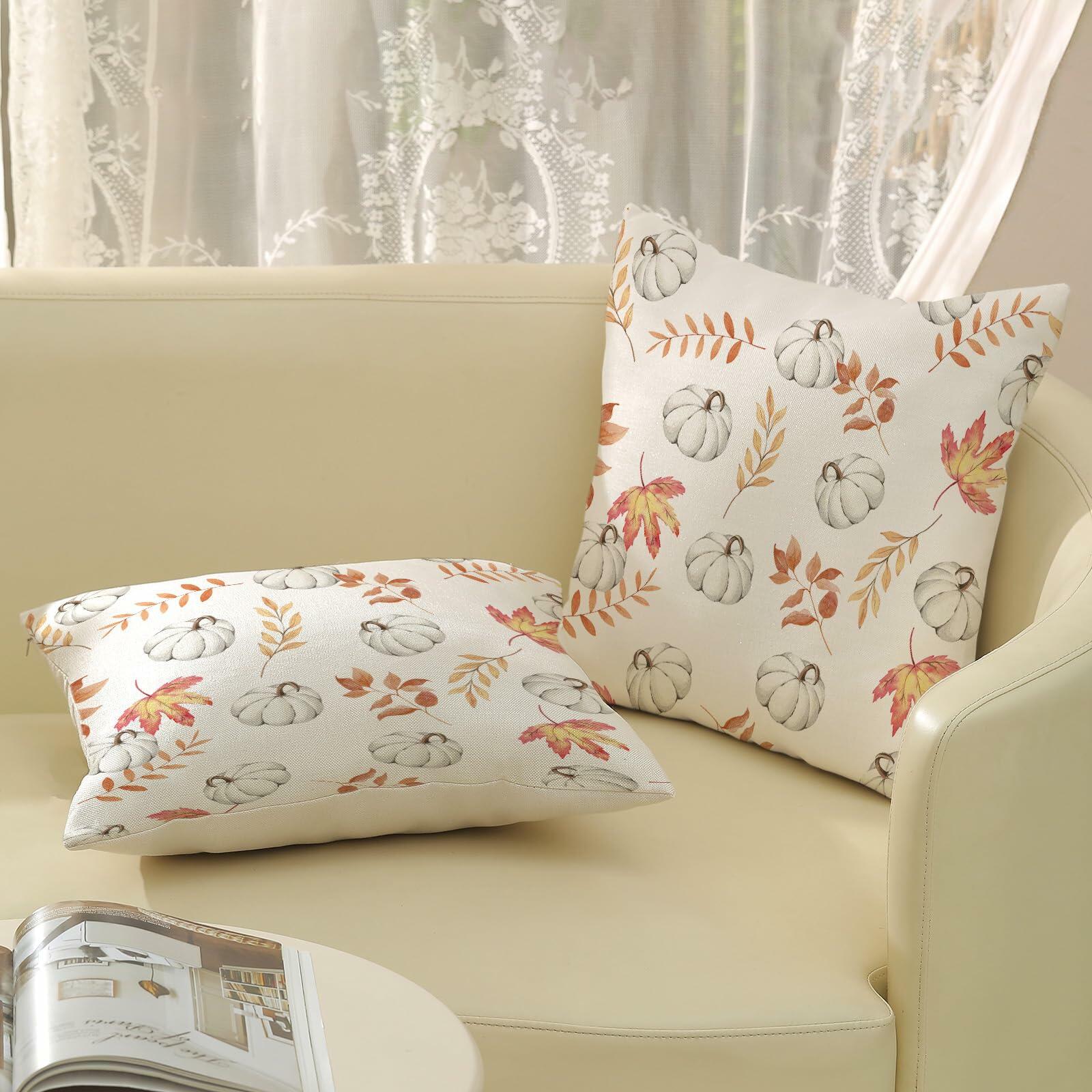 OFIRD Fall Decor Pillow Covers 20x20 White Pumpkin Maple Leaves Pack of 2