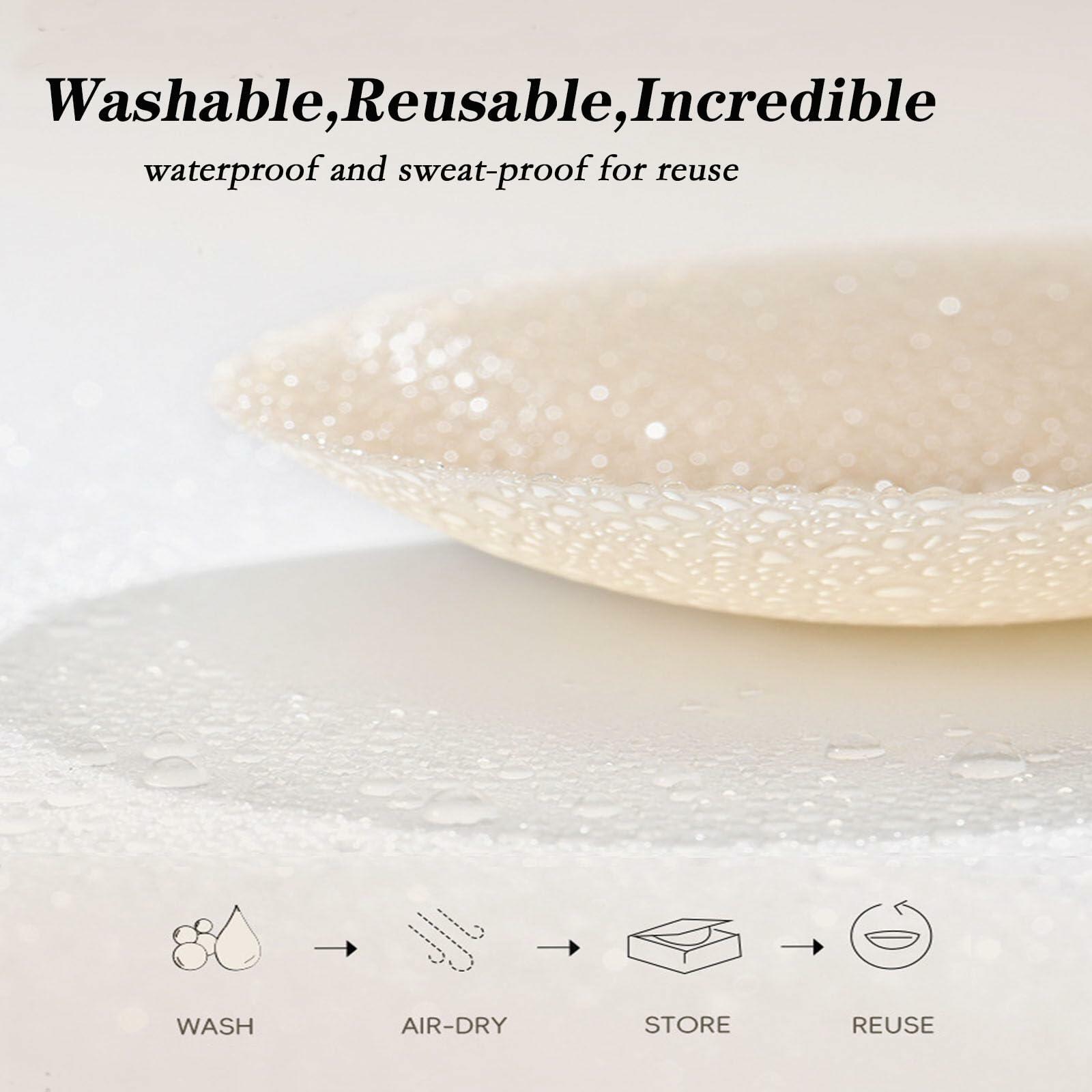 - Washable & Reusble : The pasties nipple covers is reusable and waterproof. After use, simply wash with mild neutral soapy water and air dry. After drying, the self-adhesive performance recovers without wrinkles.
