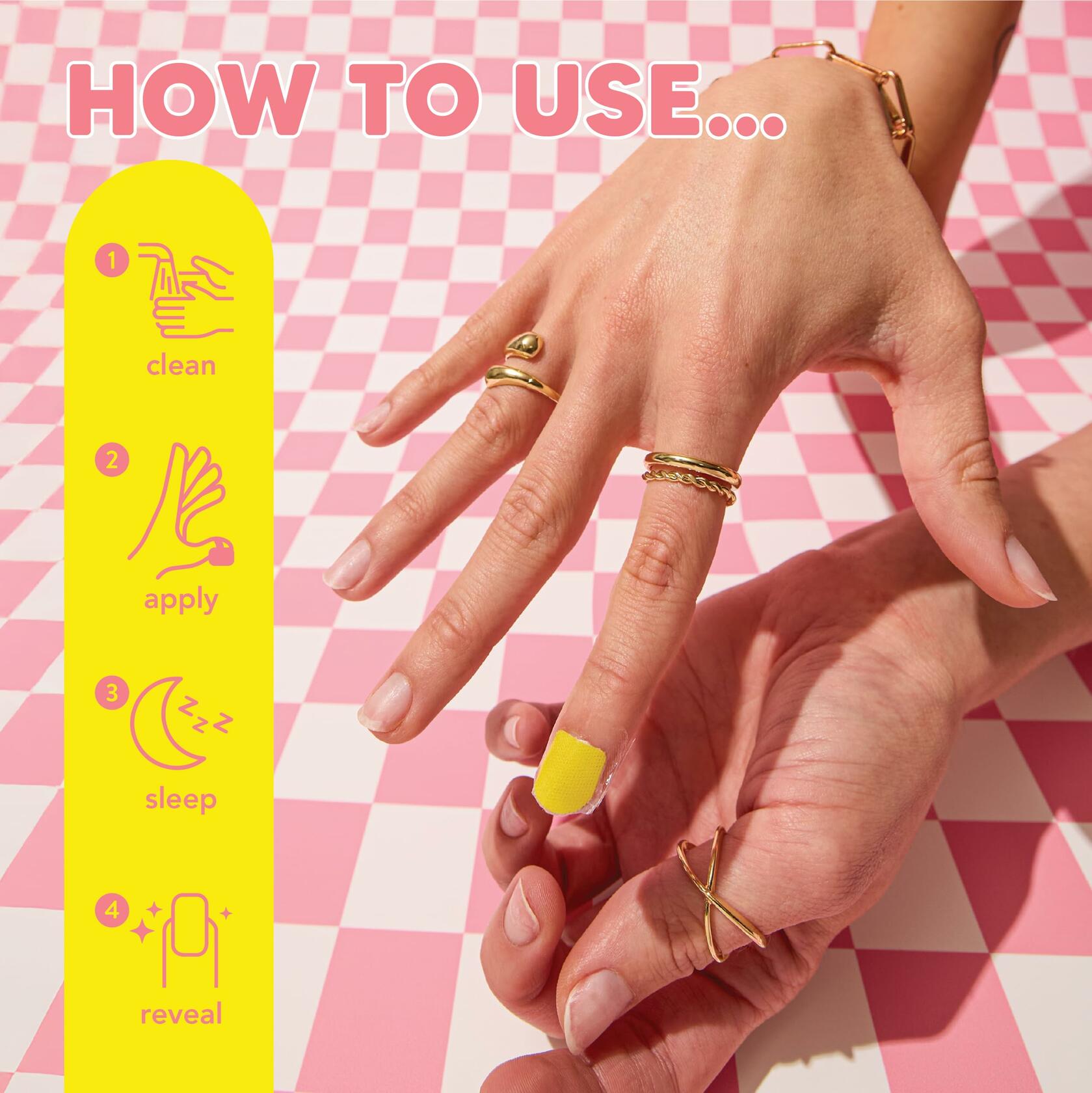 - 8-Hour Overnight Treatment: These nail patches work the overnight shift to improve the condition of your nail beds and cuticles while you sleep.