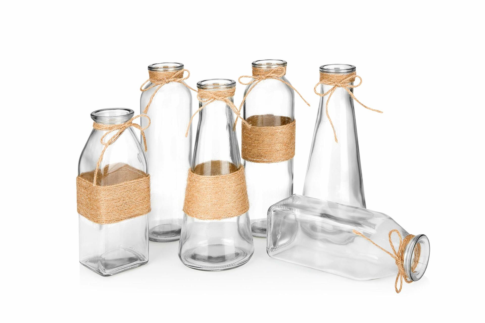 Opps Glass Vases Set of 6 Unique Shapes Creative Rope Design Clear
