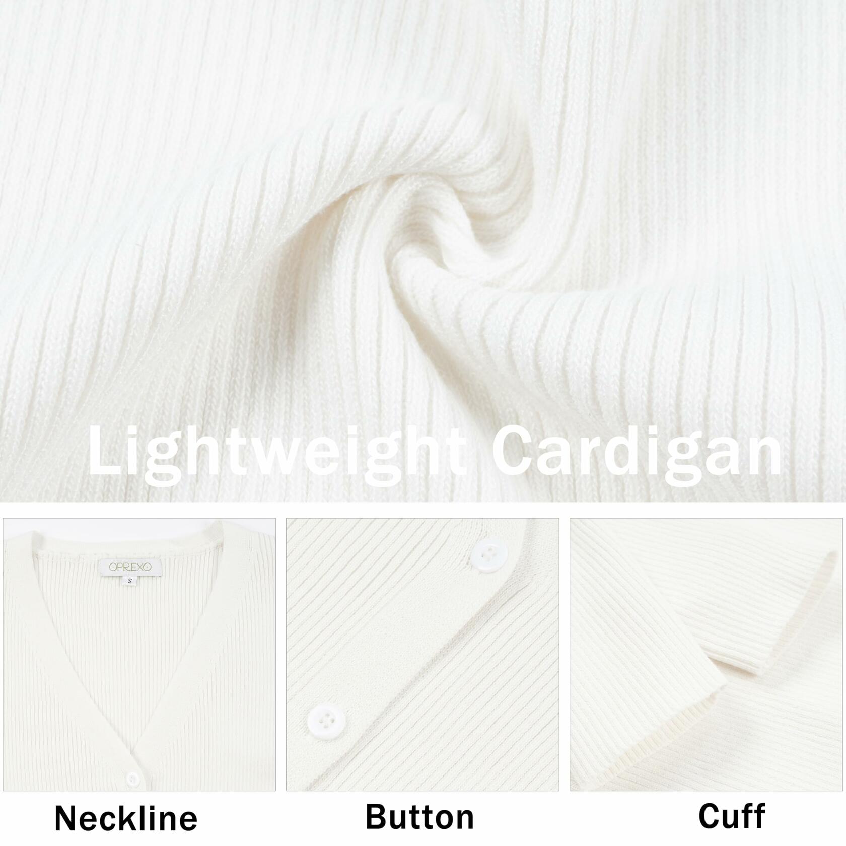 OPREXO Women's Ribbed Knit V Neck Button Down Cropped Cardigan White Size L
