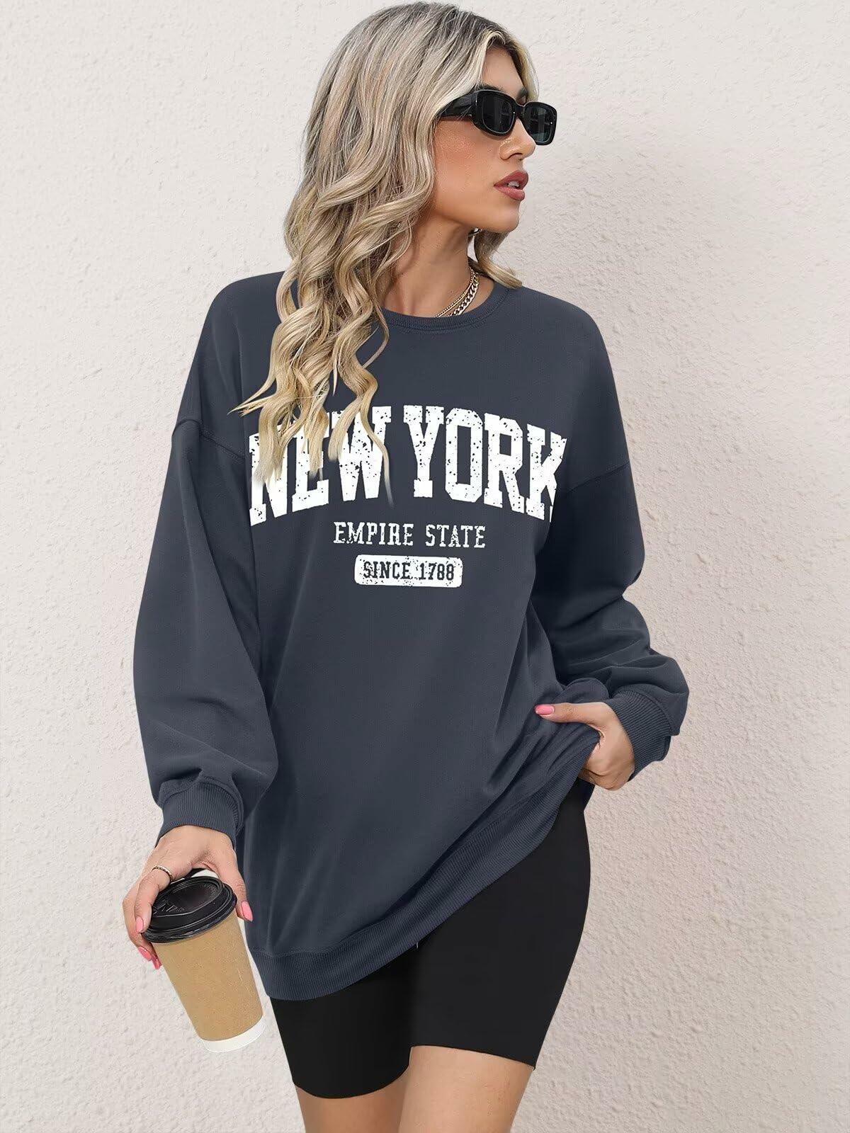 ORANDESIGNE Oversized Graphic Sweatshirt Women Long Sleeve New York Blue Size XS