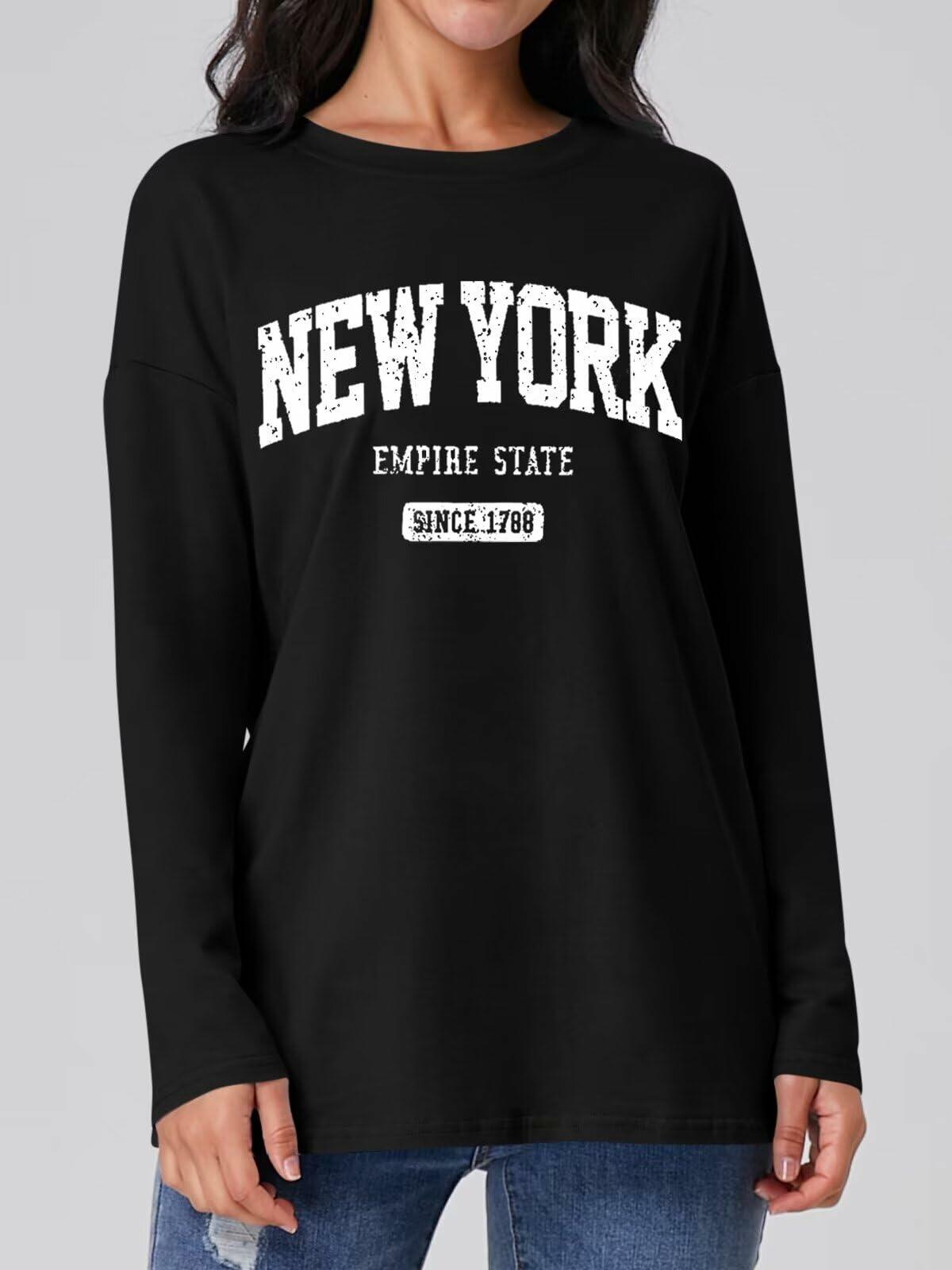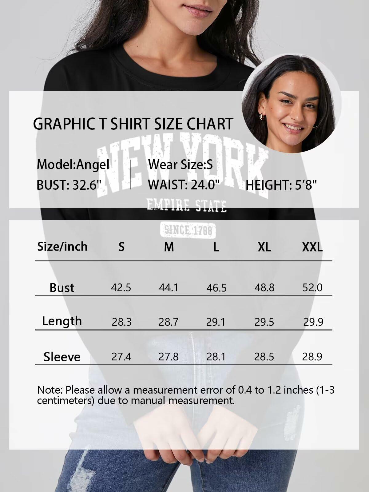 - Design: Oversized women's tees with round neck and city letter print. Versatile for single or layered wear