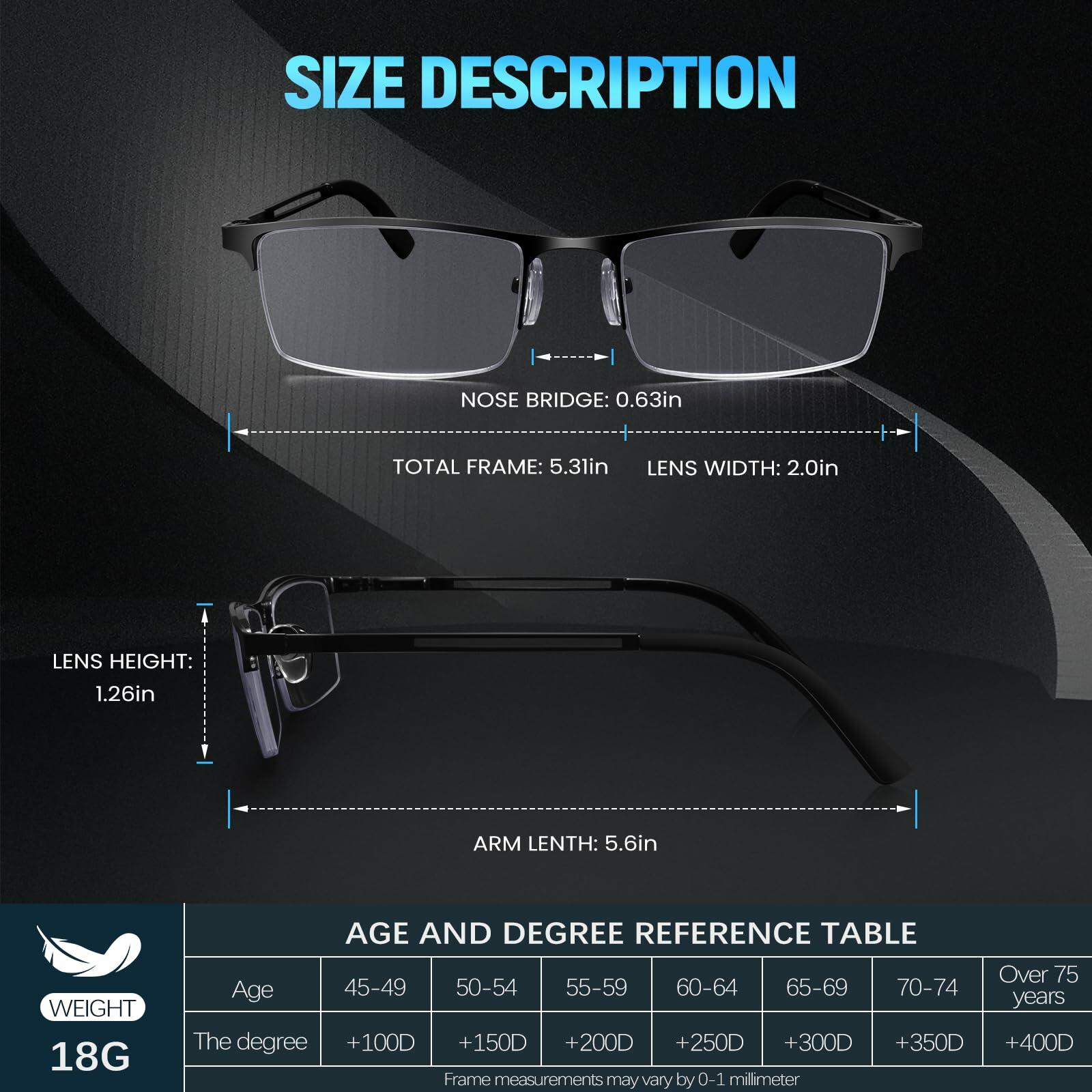 - CHOOSE RIGHT DIOPTERS: Elevate your reading experience with our Readers for men. Our lenses boast precise magnification for accurate reading, reducing eye strain and enhancing comfort. Choose your perfect magnification level and enjoy crystal-clear vision