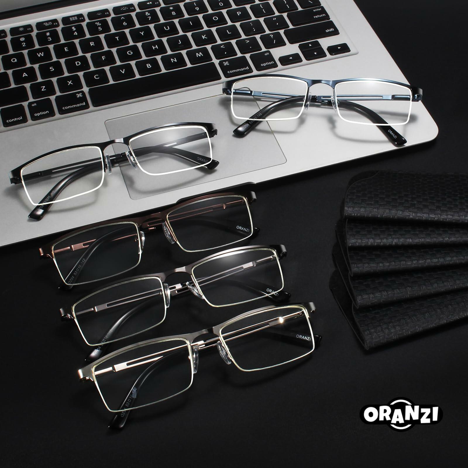 ORANZI 5-Pack Blue Light Blocking Reading Glasses, Half Metal Frame, 1.00