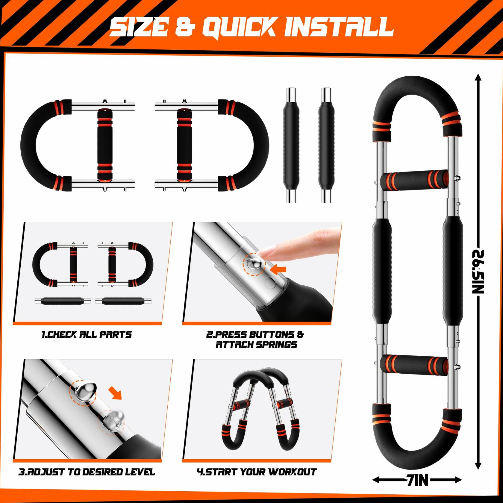 - Portable & Space-Saving Design: Lightweight and detachable, this at home workout equipment fits easily in your bag or drawer. Take your chest workout equipment anywhere - home, office, or outdoors - so you never miss a training session.