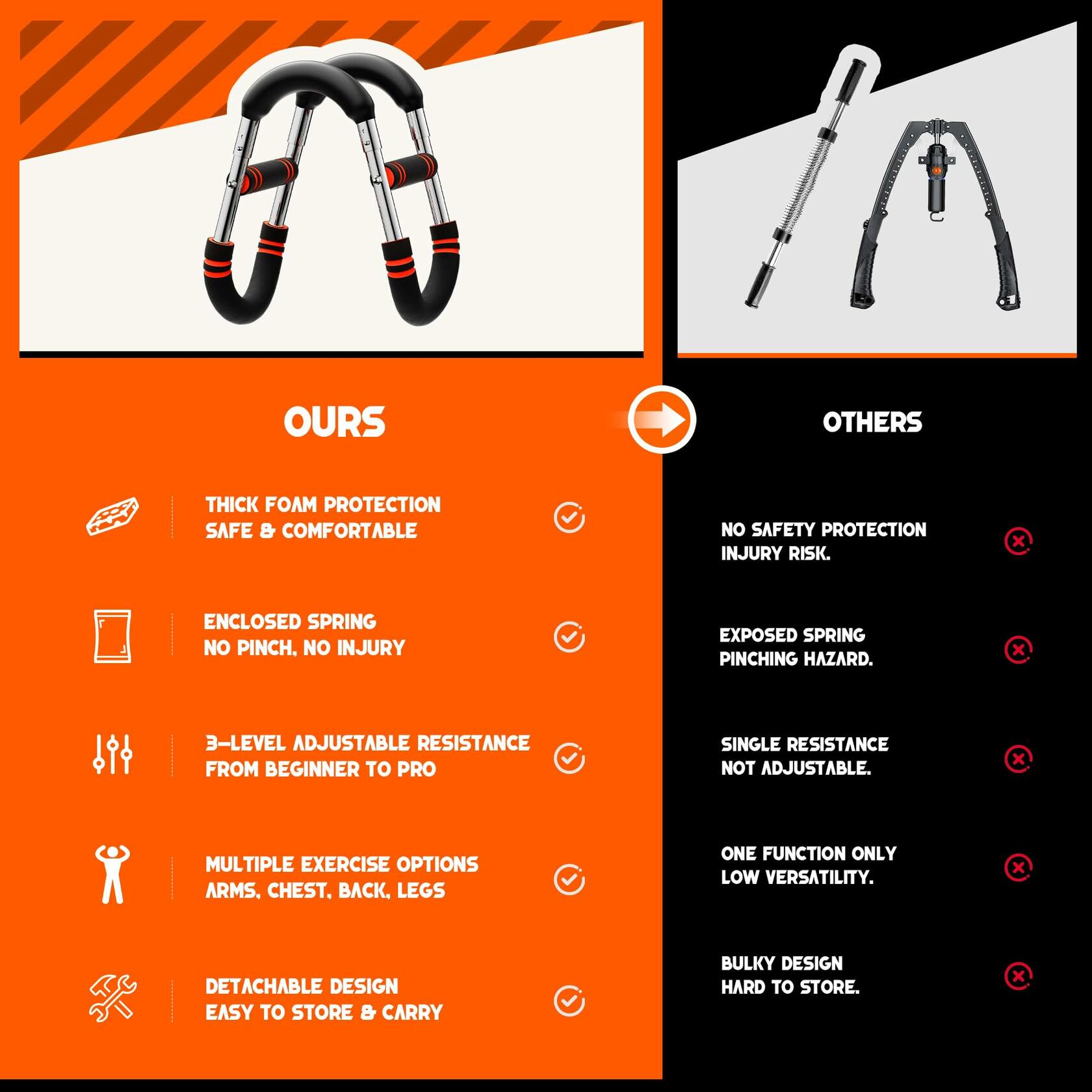 - Durable & Safe Build: Made with heavy-duty metal springs for stability and smooth motion. The foam-covered spring prevents injuries, while thickened non-slip handles ensure comfort and control - ideal for daily use as a chest trainer for men.