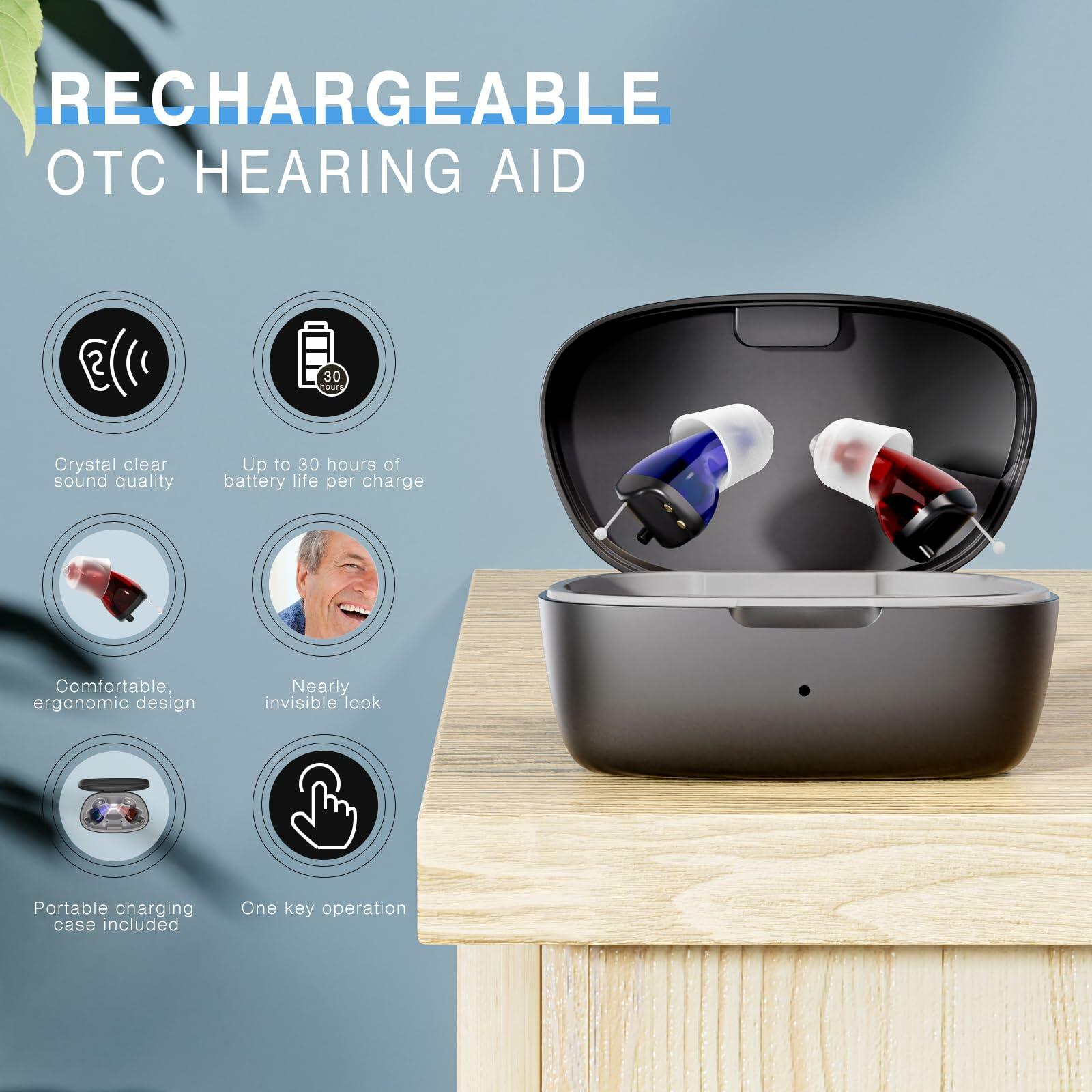 OTC Rechargeable Hearing Aids for Seniors Noise Cancellation In-Ear Black