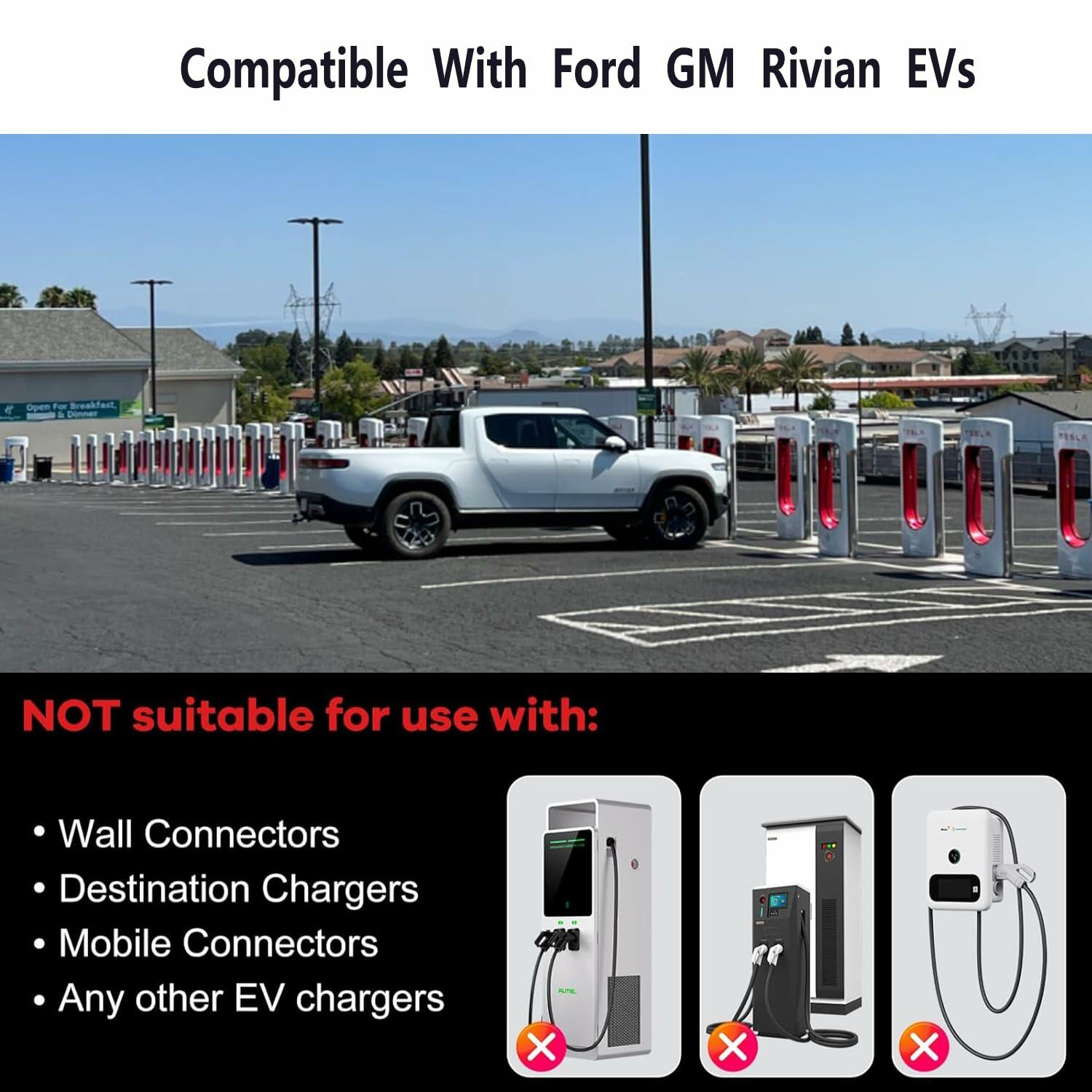 - Not suitable for use with: Wall connectors/ Destination Chargers/Mobile Connectors/Any other EV chargers.