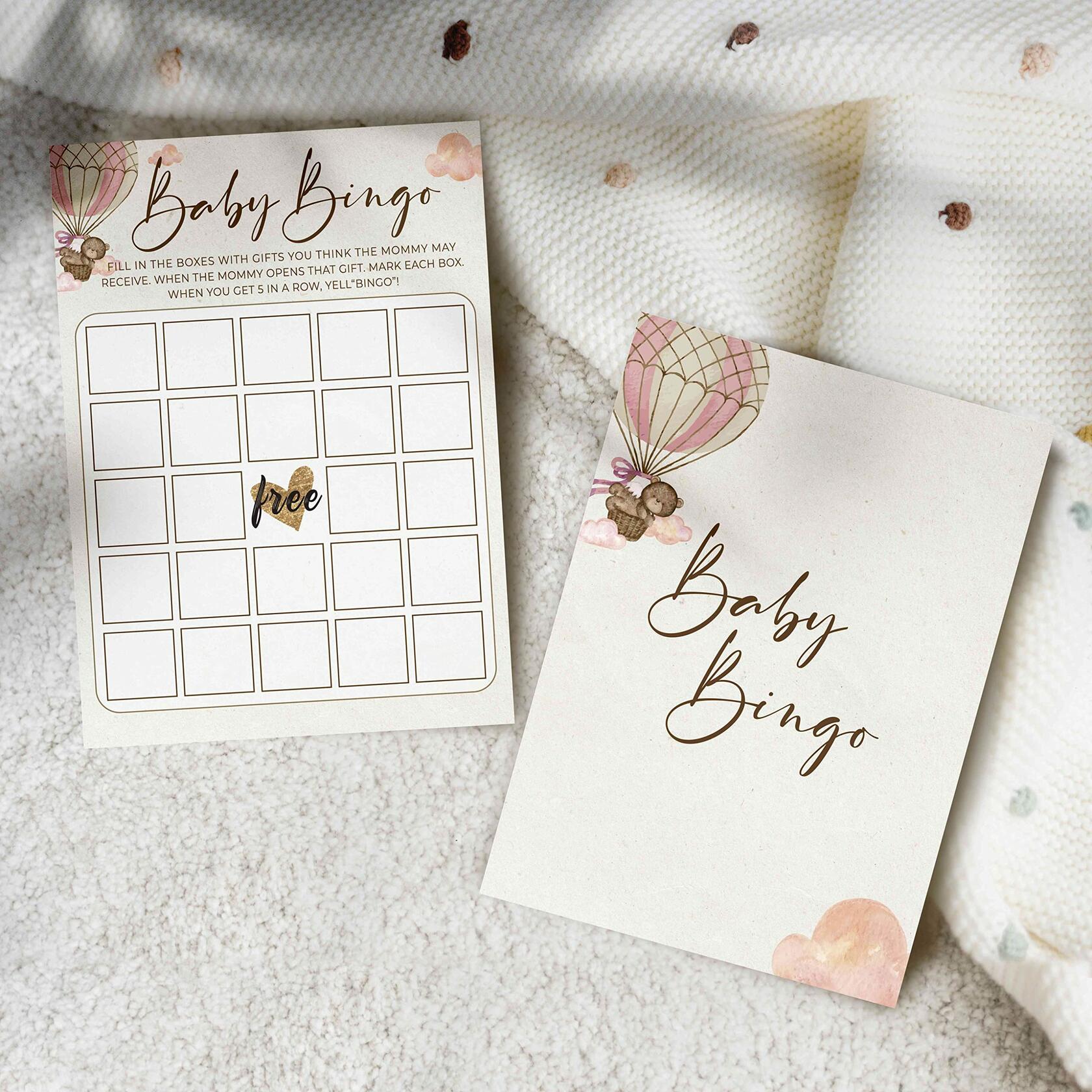 OUDIEA Baby Shower Bingo Cards Teddy Bear Hot Air Balloon 5x7 30 Count