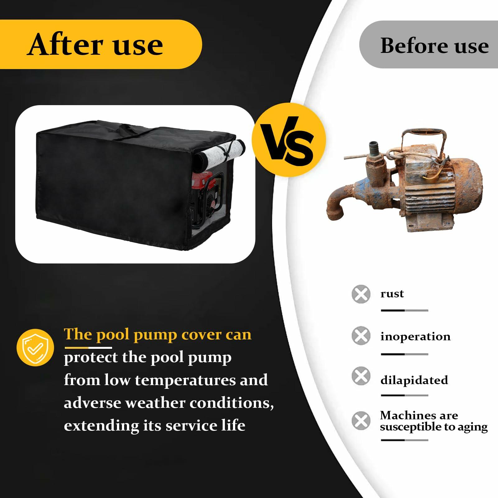 - Easy to use: This cover has a slit on the top that allows within 3.2'' wiring and pipes to pass through for heat dissipation and ventilation, and the drawstring design is beneficial for better fixing the pump and preventing the cover from being blown away by the wind