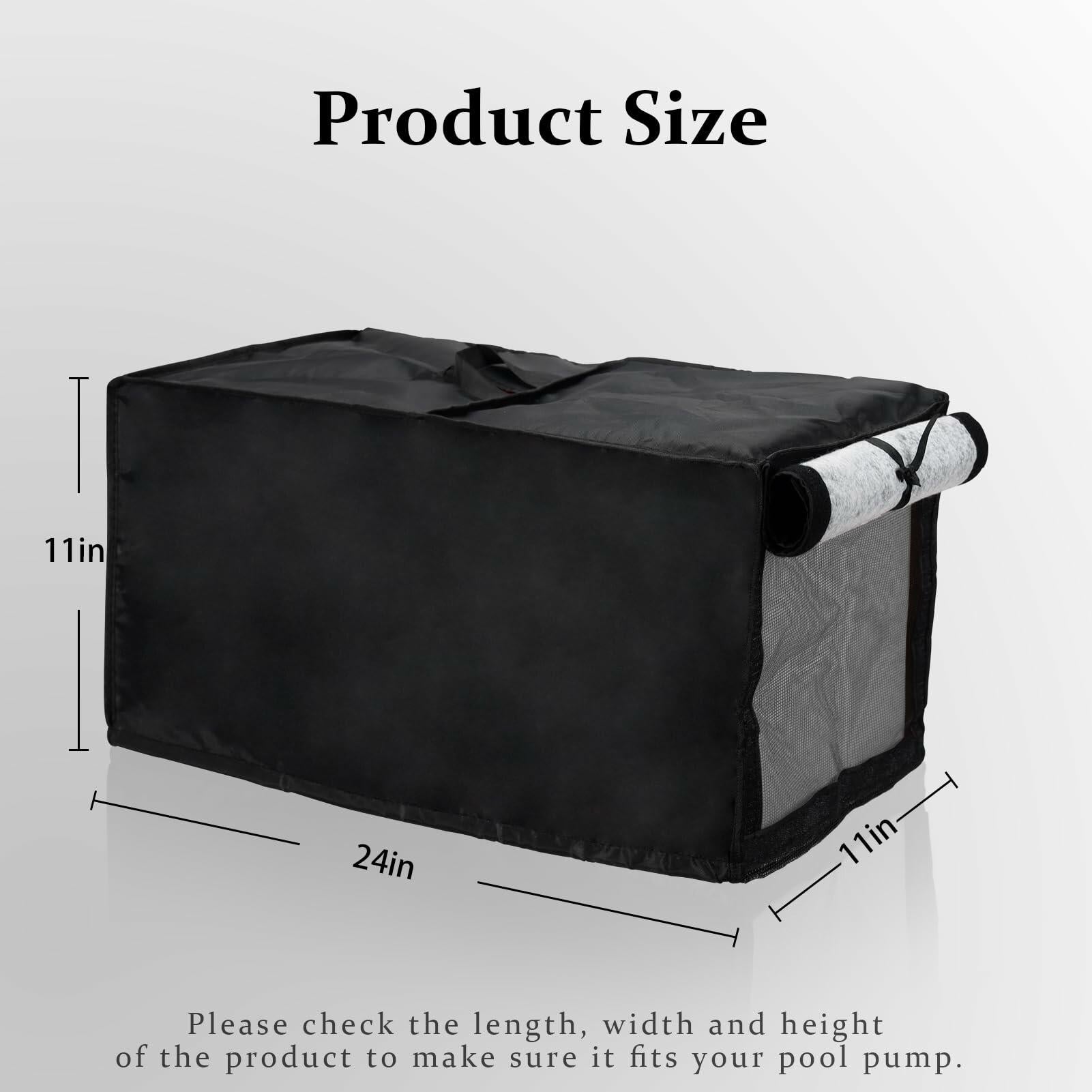 - Universal size: The heat pump cover measures about 24 "L x 11 "W x 11 "H, fits most of heat pumps to protect your pools heat pump from natural damage. It works well even in bad weather, the cover needs to be a little larger than the size of your pools pump, please confirm the size before placing the order