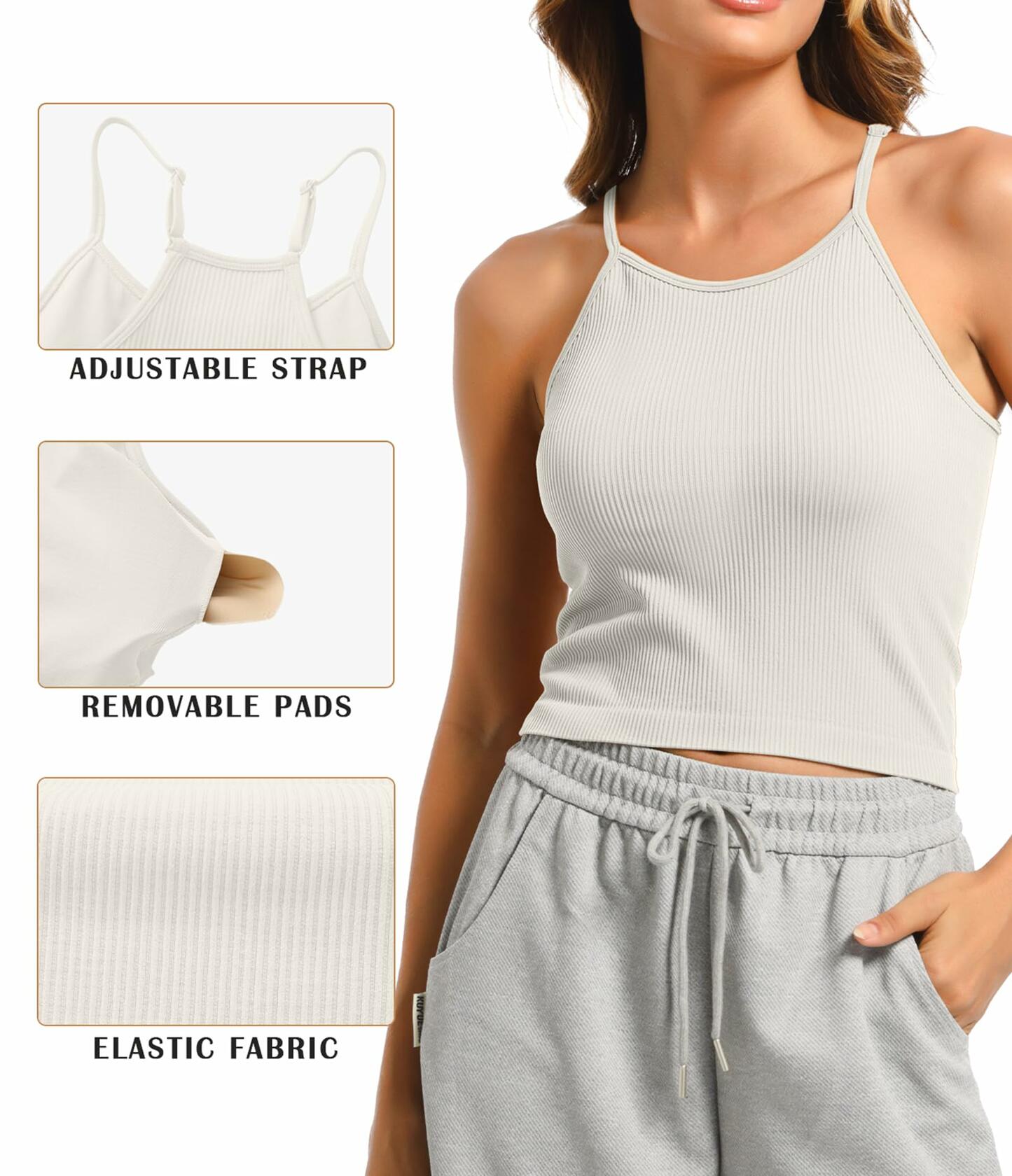 - Occasion: Women's Long crop tops,tank tops built in bra,camisole,cropped tanktops,spaghetti strap tank tops,seamless longline sports bra,halter neck rib sports bra is great for yoga,Pilates,fitness,running,outdoor sports,casual everyday wear and etc