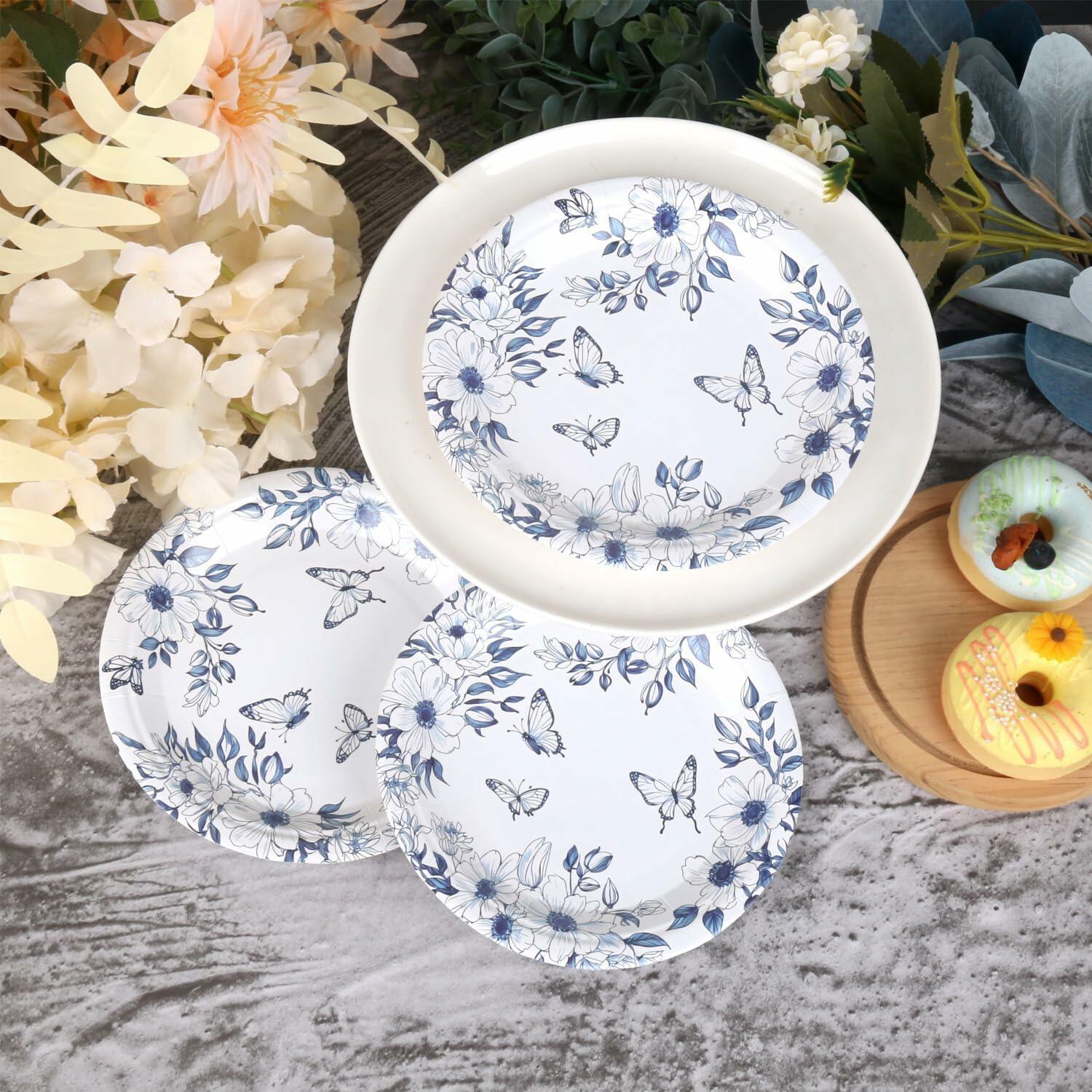 Pandecor 50 Blue White Floral Disposable Paper Plates 7in Butterfly Theme