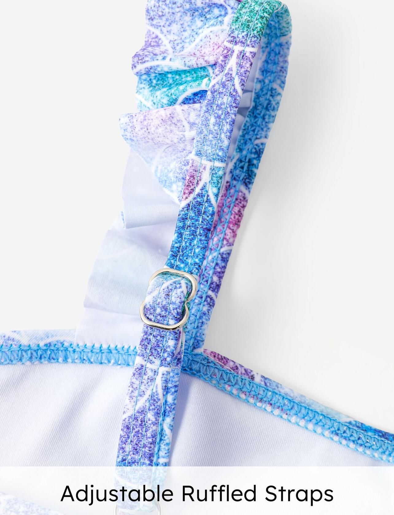 - Stylish Design: Featuring a delightful floral print and charming ruffled bikini sets, our girls' ruffled bathing suits offer a trendy look that your little one will adore wearing.